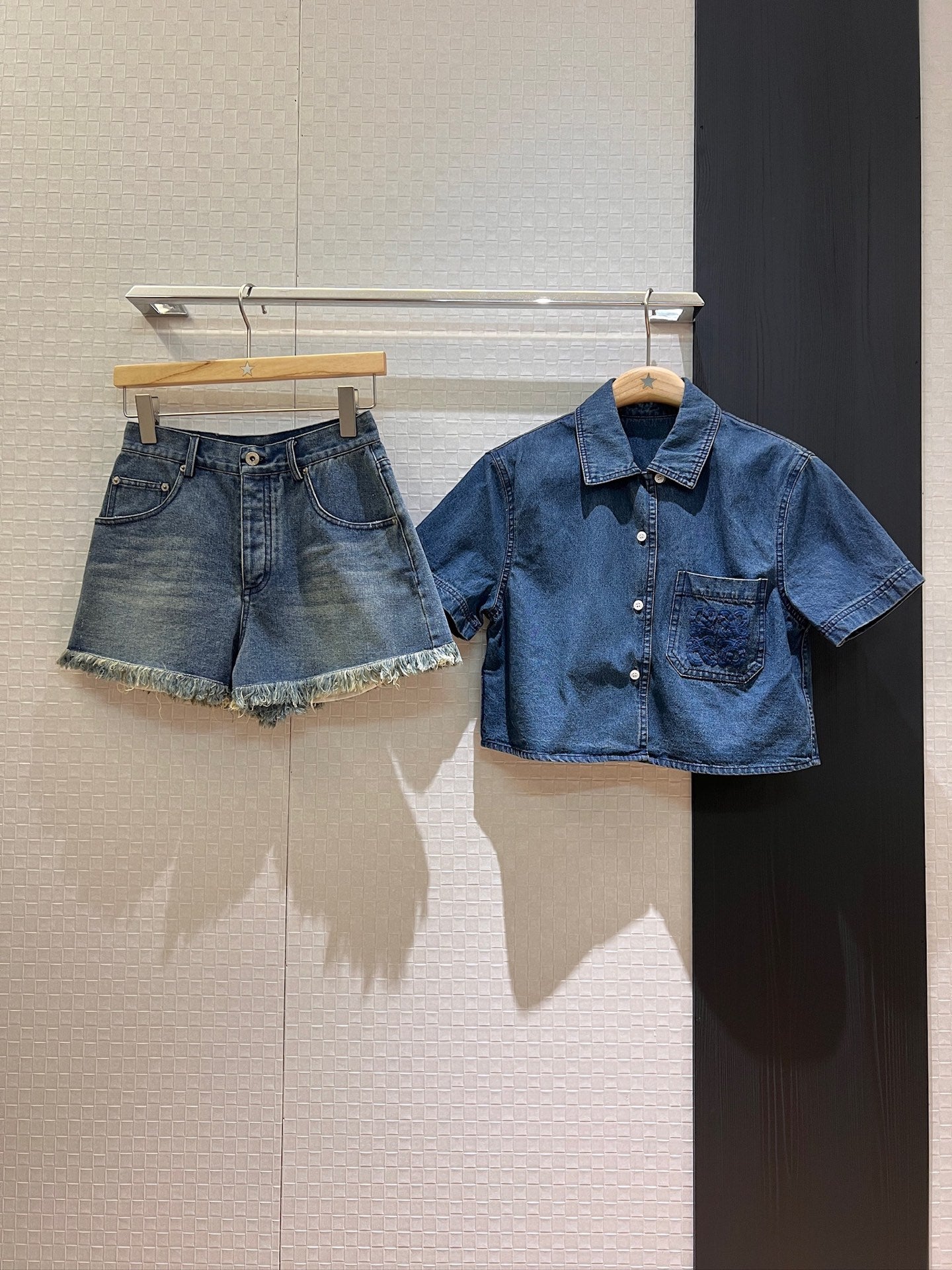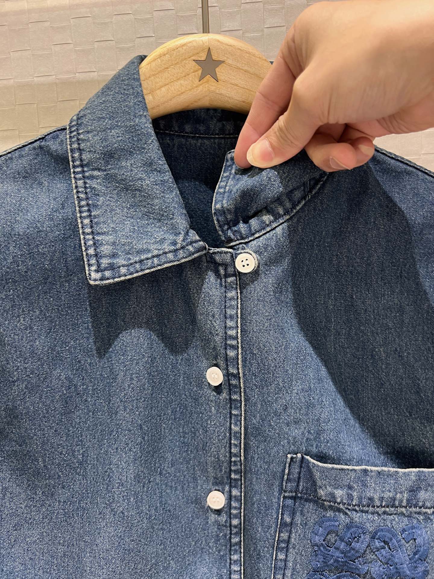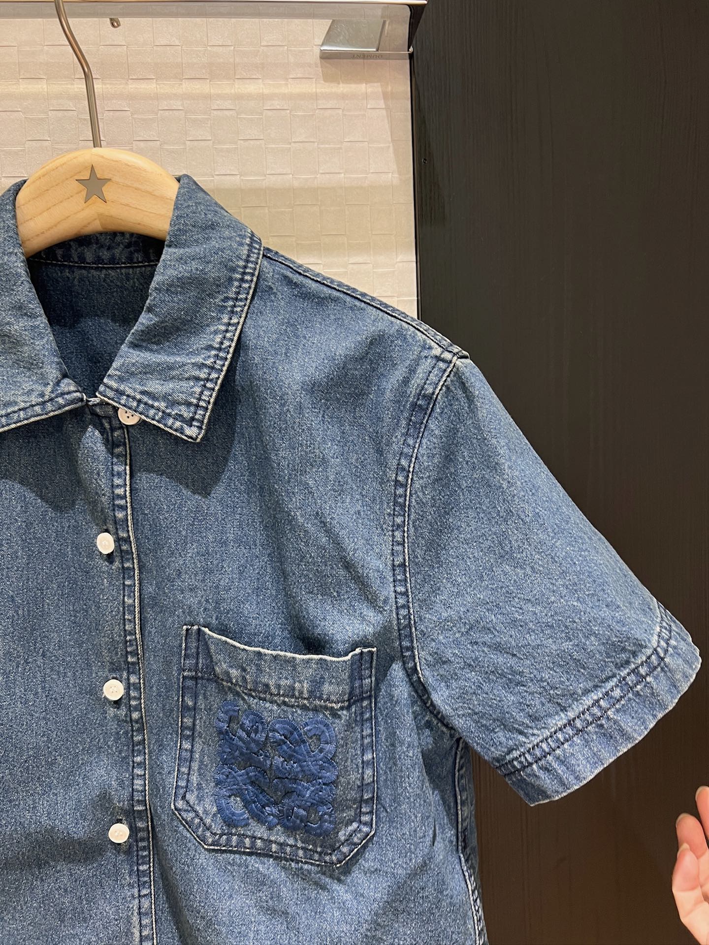 LO 25 Heavy duty embroidered wool logo short sleeve denim jacket