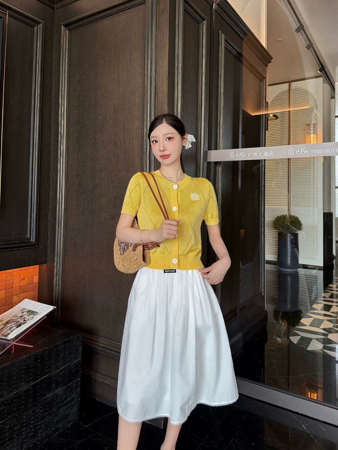 LO 25 new embroidery hollow single-breasted round neck short-sleeved knit cardigan