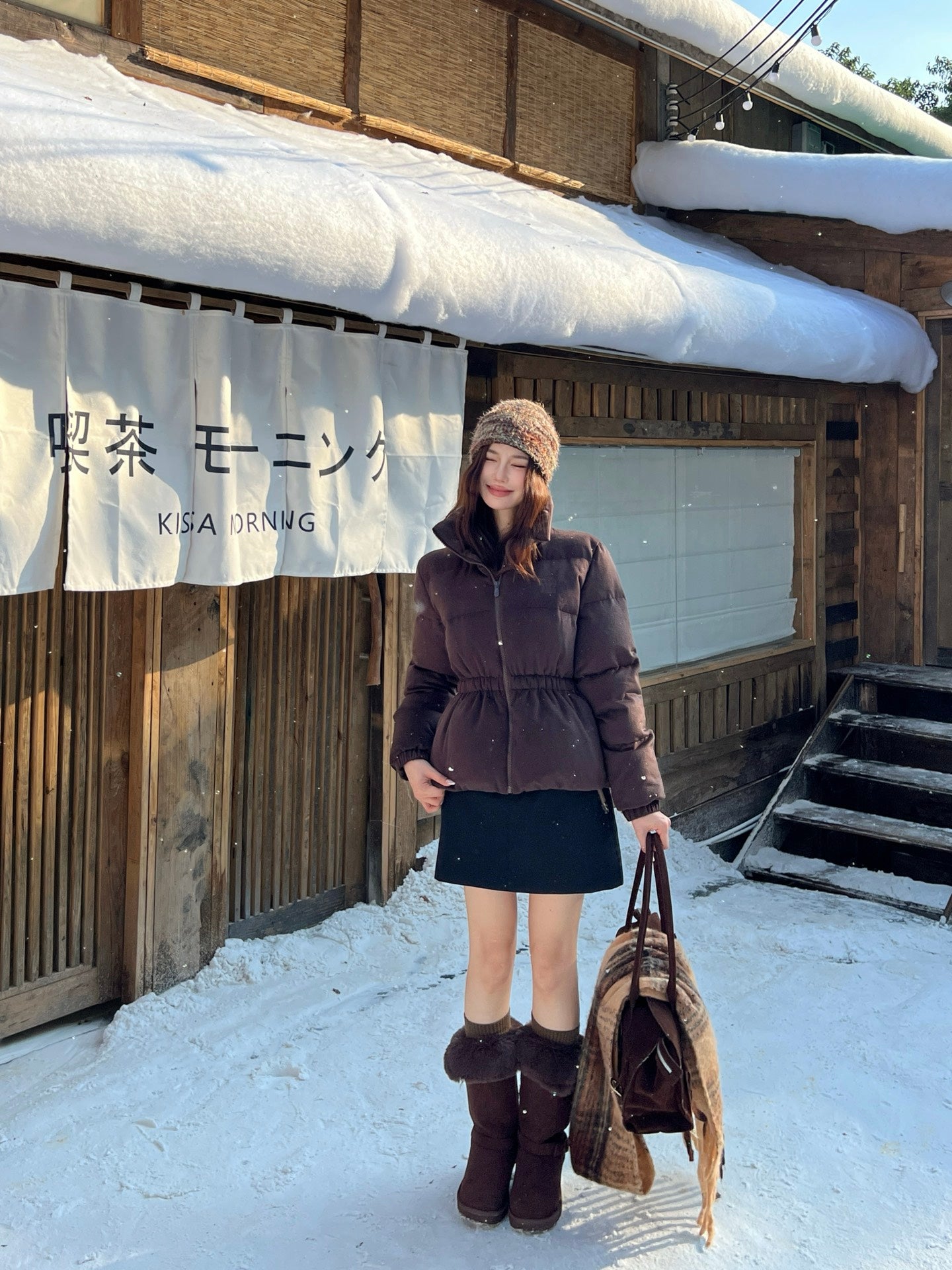 Lor 25 New drawstring waistband woolen down jacket(NAVY/BROWN)