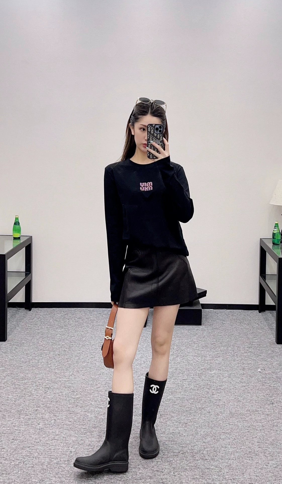 Customized YB twill cotton for a comfortable, stretchy feel. The round-neck, long-sleeved top features a signature logo on the chest, outlined with rhinestones that reflect light for a luxurious touch. Breaking away from the monotony, the regular fit flatters the figure, creating a slimming, sophisticated look. Perfect for an elegant autumn/winter innerwear look. Customized fabrics and accessories for everyday wear, dating, and casual wear. Look for the high-end version.