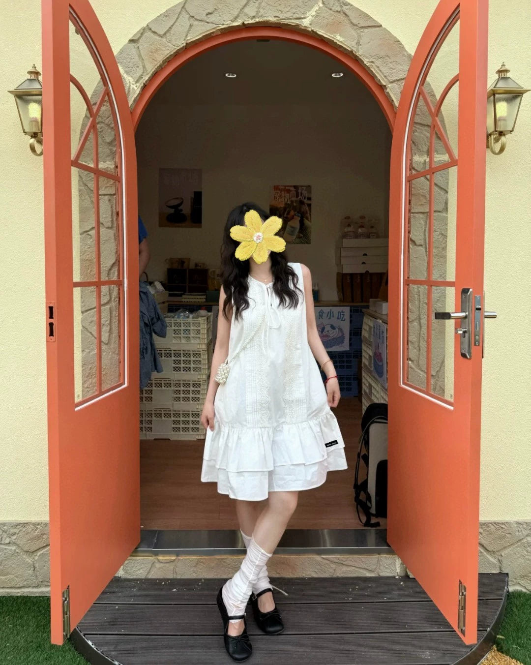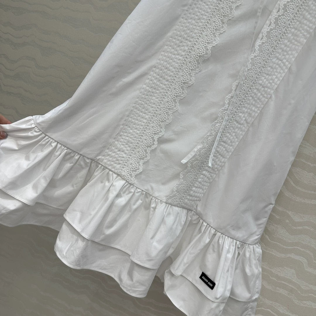 Water-soluble lace lace playing stripes craft design, imported cotton fabrics, layered skirt design version of the upper body absolutely absolute son! Retro style sweet girl wear!