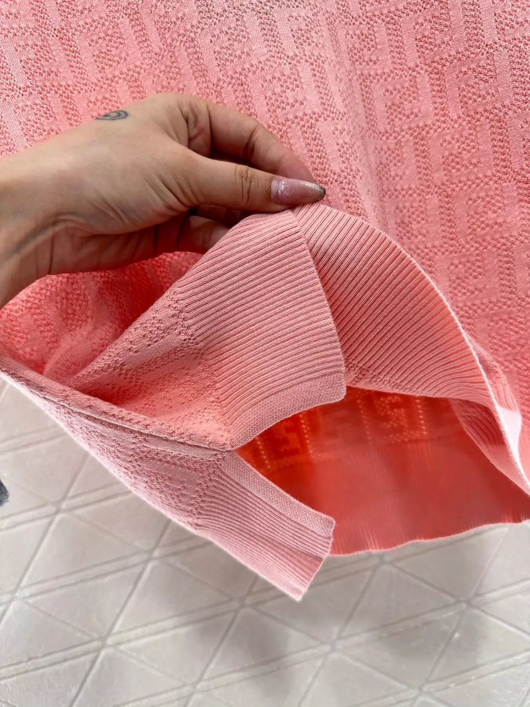 F 25 Jacquard Letter Knit Short Sleeve Top