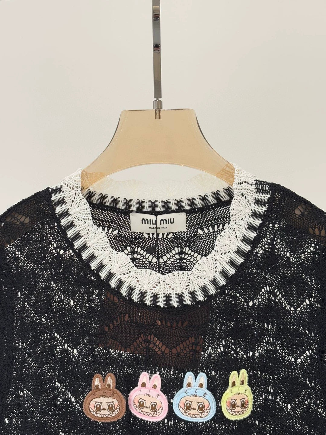 M 25 New Logo Clashing Color Crew Neck Short Sleeve Knit Top
