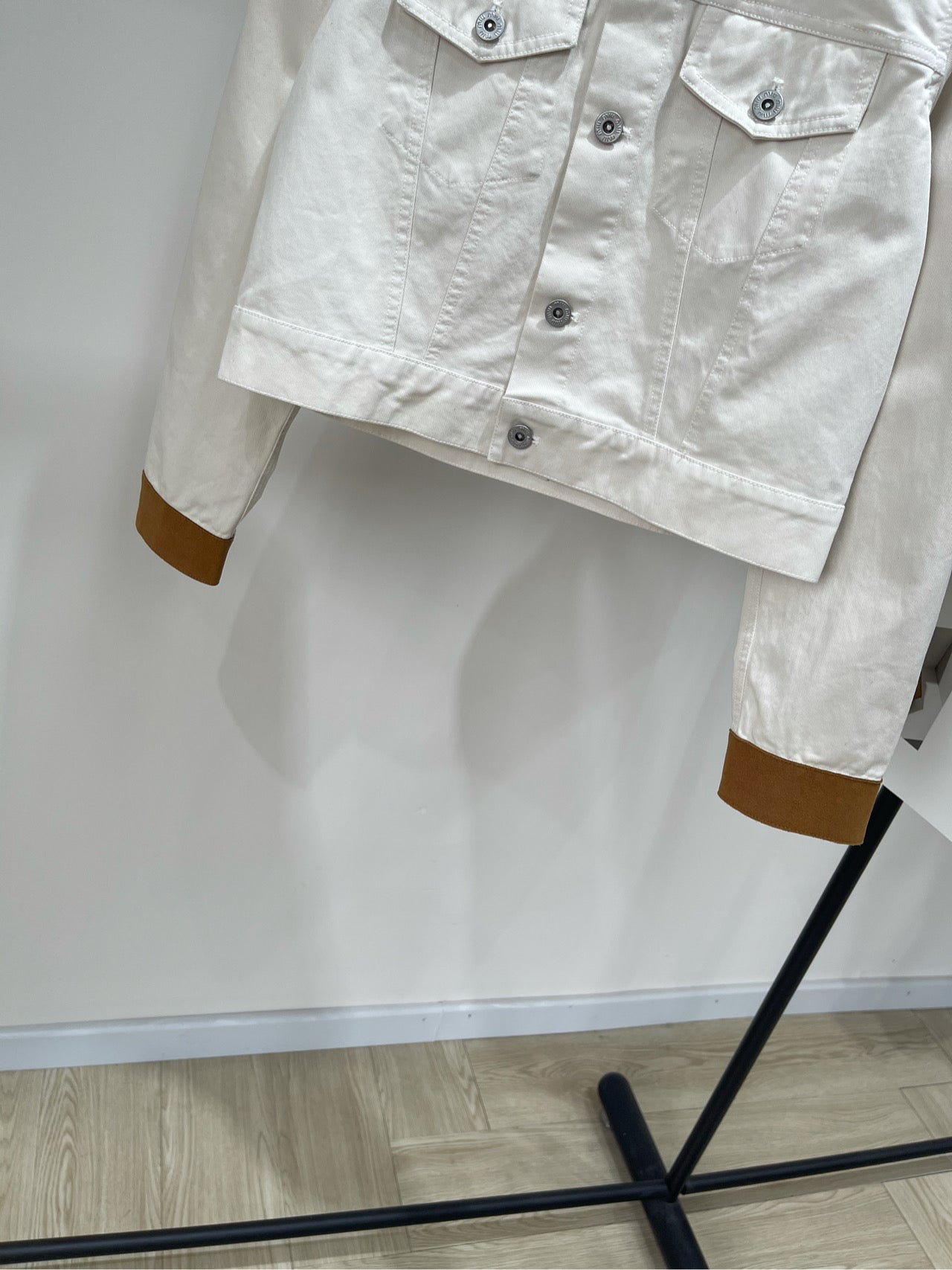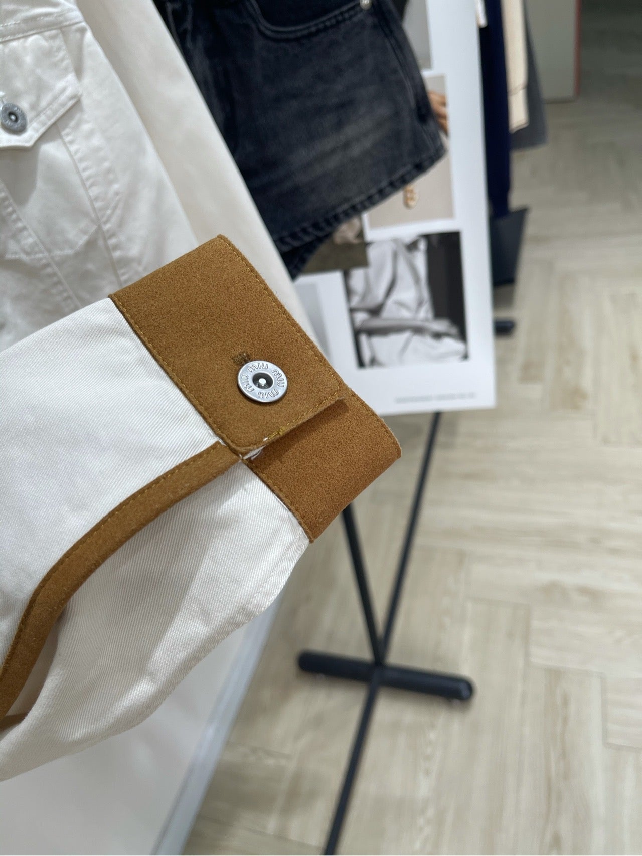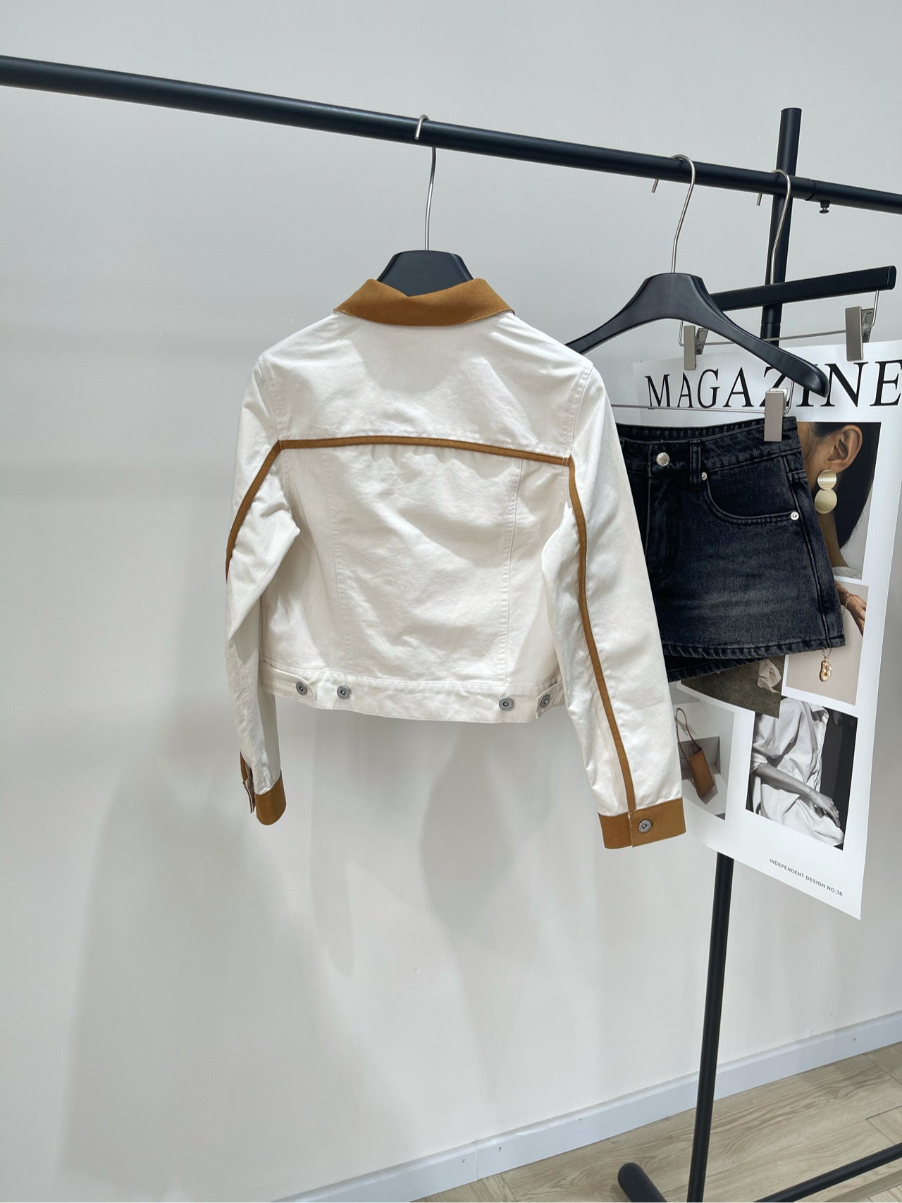 Shirt-style collar/button cuffs/matching stitching low-position welt pockets