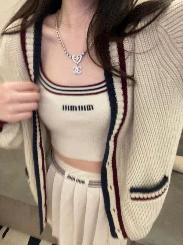 M 25Ss apricot red edged V-neck cardigan