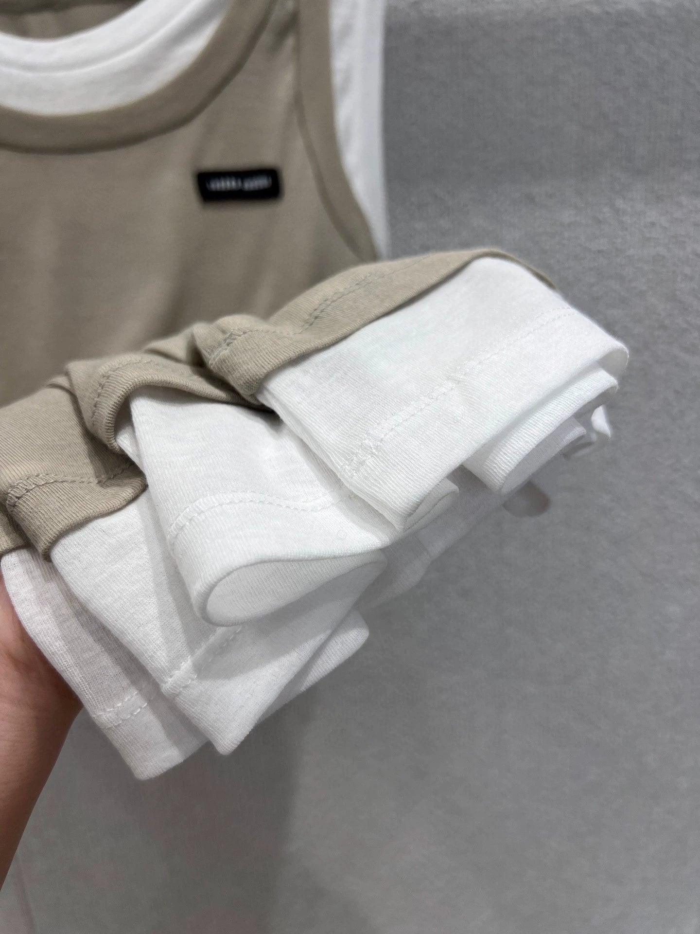 M 25SS new summer style fake two-piece contrasting color decorative label sleeveless vest