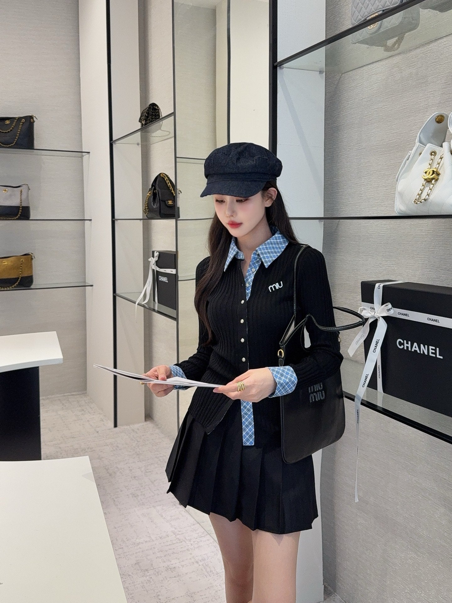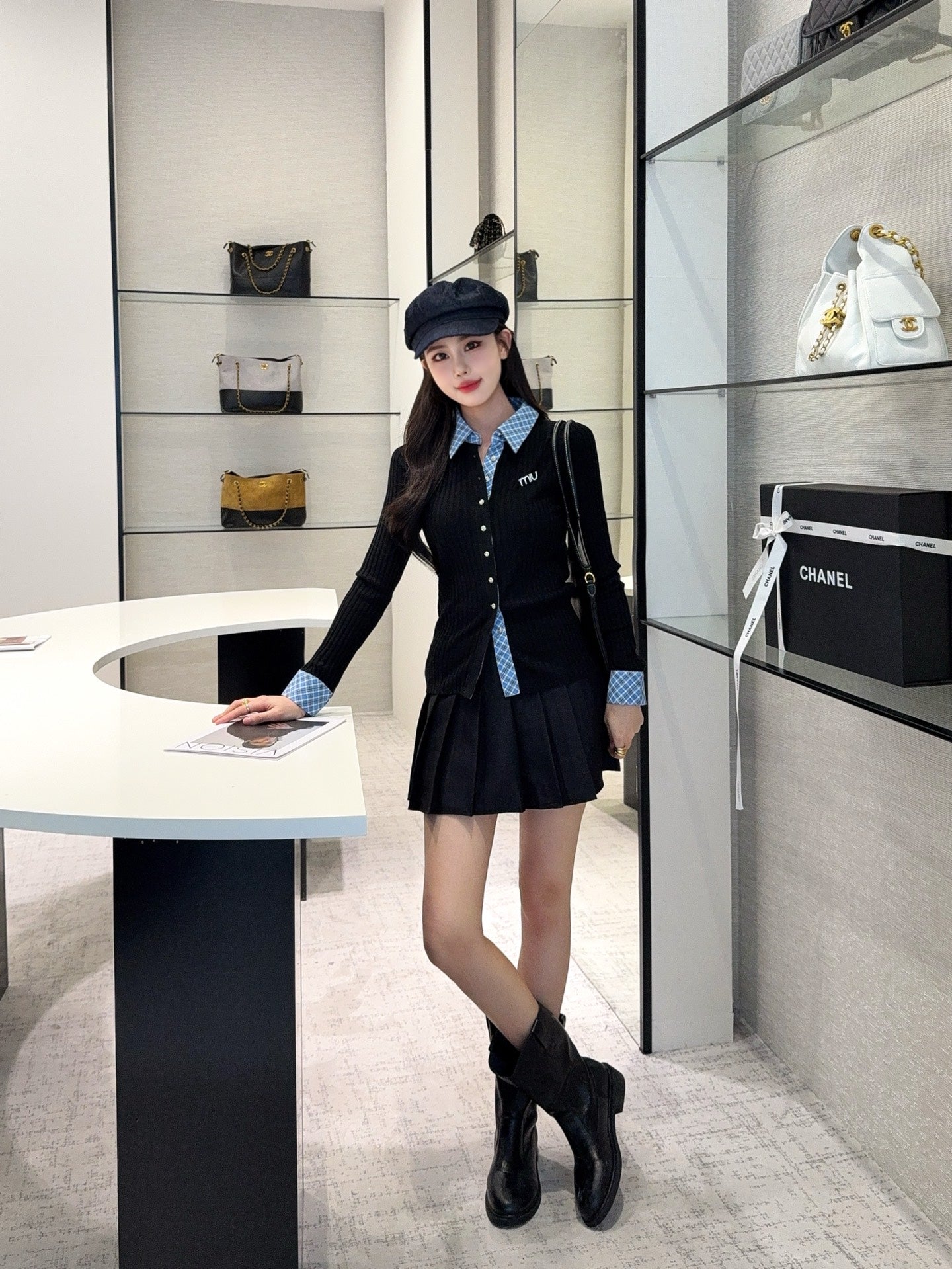 Mi 25 New plaid stitching fake two-piece sweater(WHITE/BLACK)