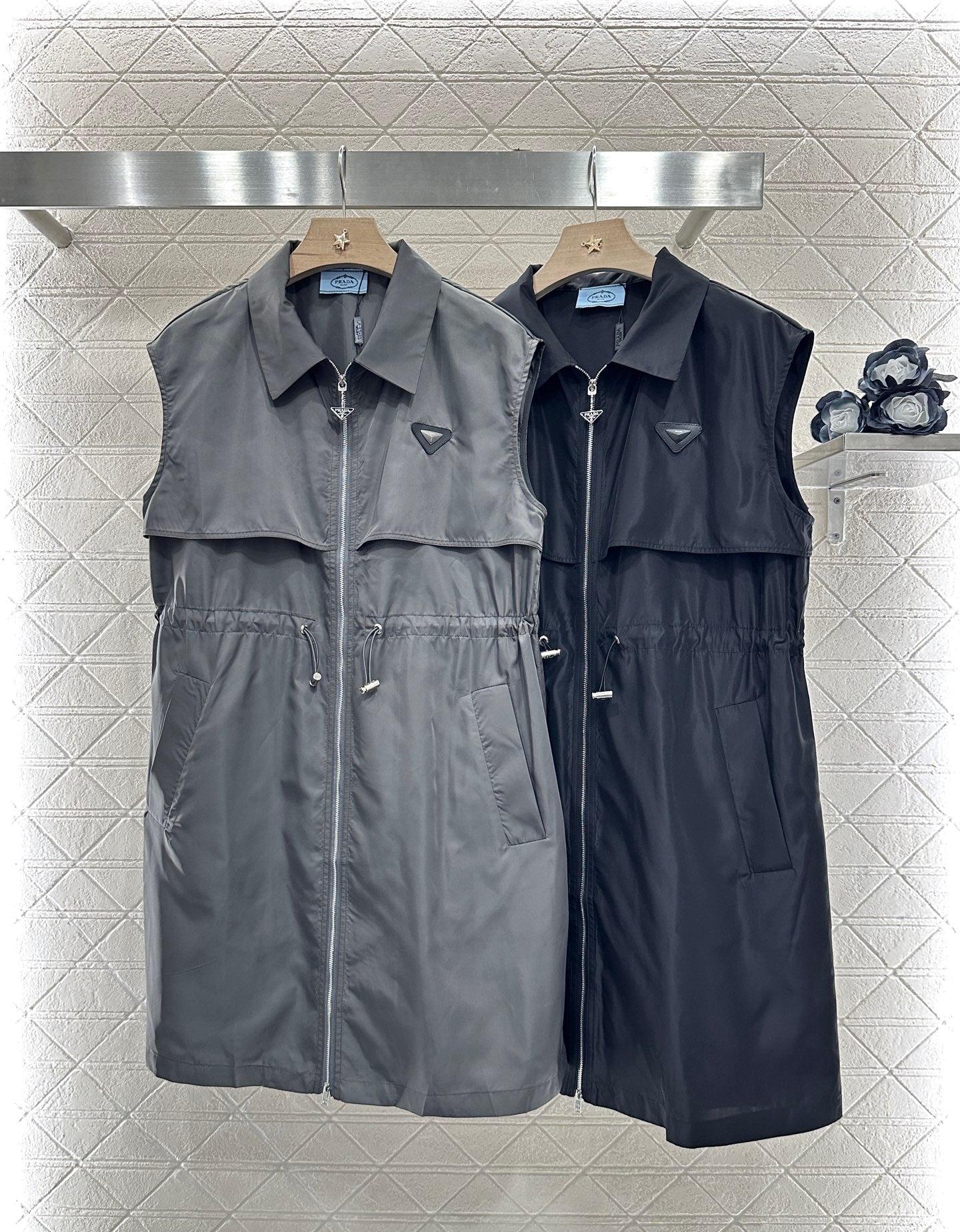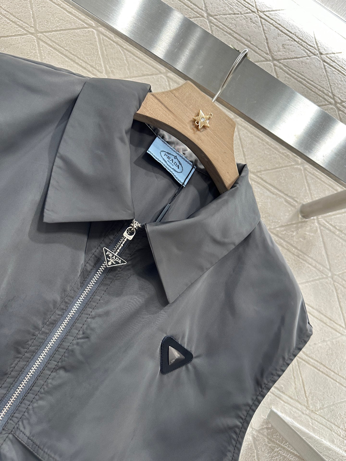 The Pr*d* 2025 drawstring vest dress offers a tailored fit with adjustable drawstring detailing, allowing you to customize your silhouette effortlessly. Crafted for comfort and style, this versatile piece transitions seamlessly from casual outings to more polished occasions, making it a practical addition to any wardrobe.