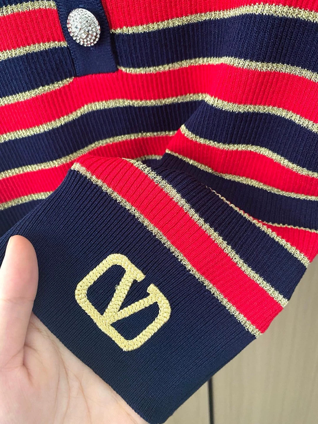 V 25 new striped embroidery button collar short sleeve knit(Red\white)