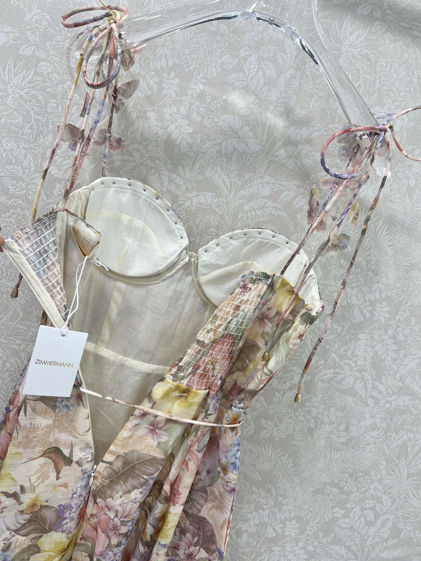 Shoulder straps stapled diamonds three-dimensional flower decoration chest stapled diamonds waist pleats outlining the waistline to brighten up the eyes, invisible zipper closure, waist waist Summer atmosphere pull full of flourishing flowers clusters with this cloth thin rope belt Oversized pendulum skirt fairy this fairy 😍 the overall senior and show retro charm temperament.