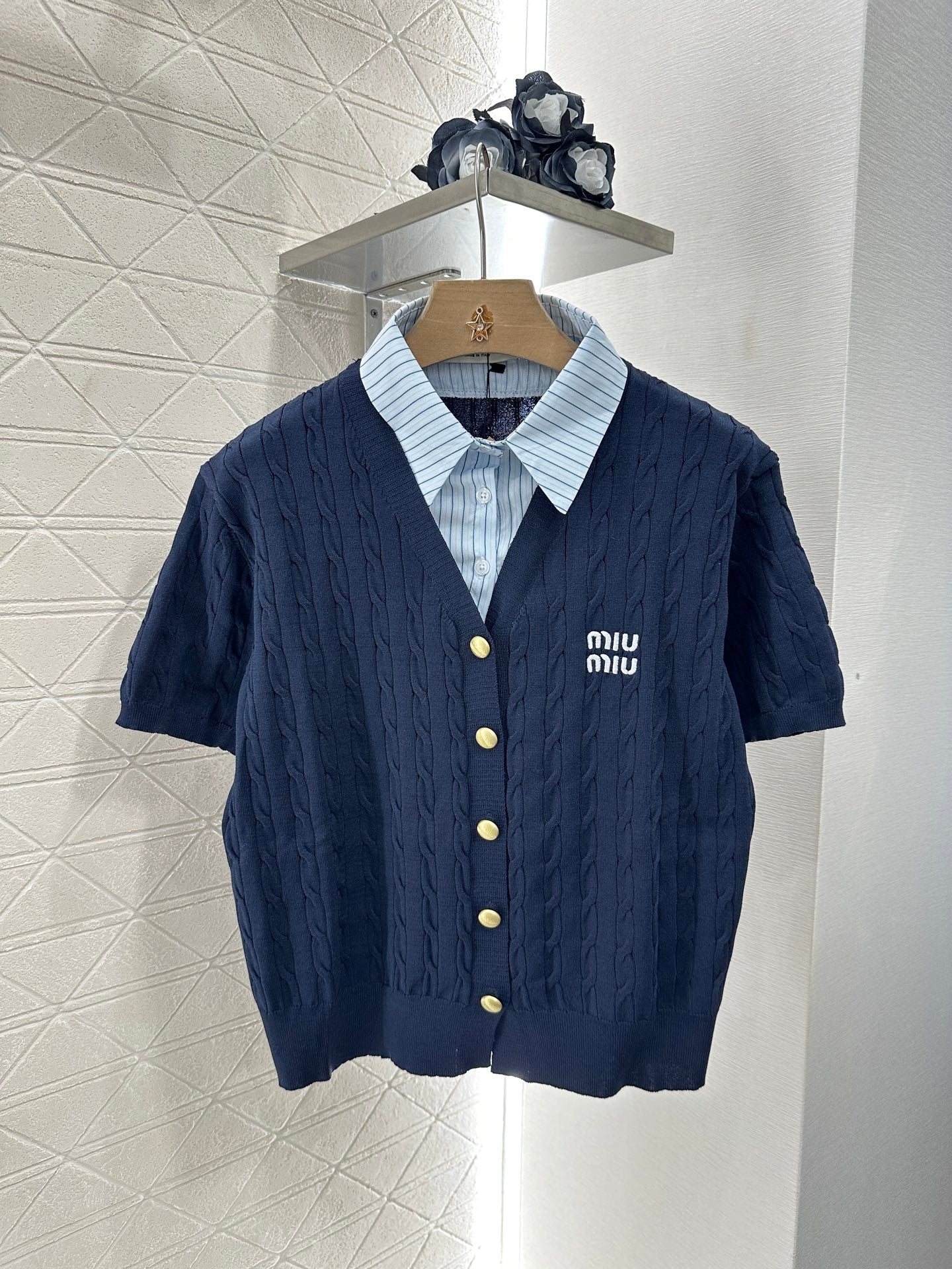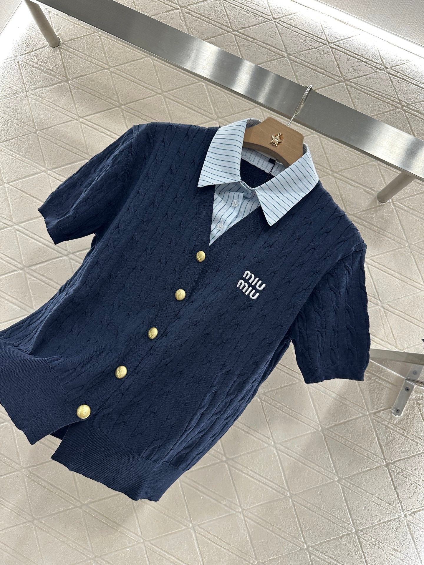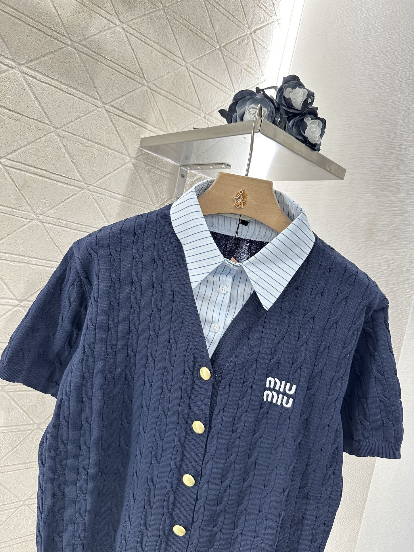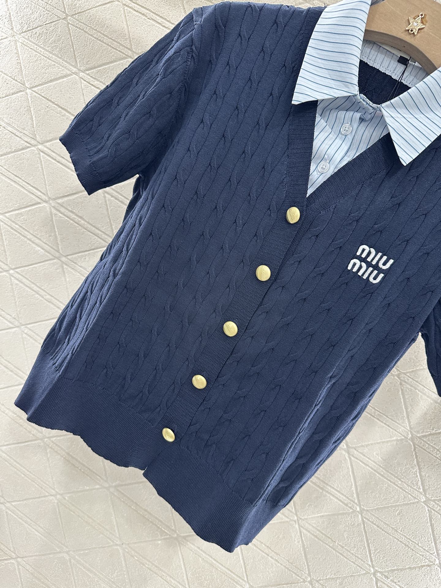 2025 Summer New Arrival Contrast Color Fake Two-Piece Knit Top