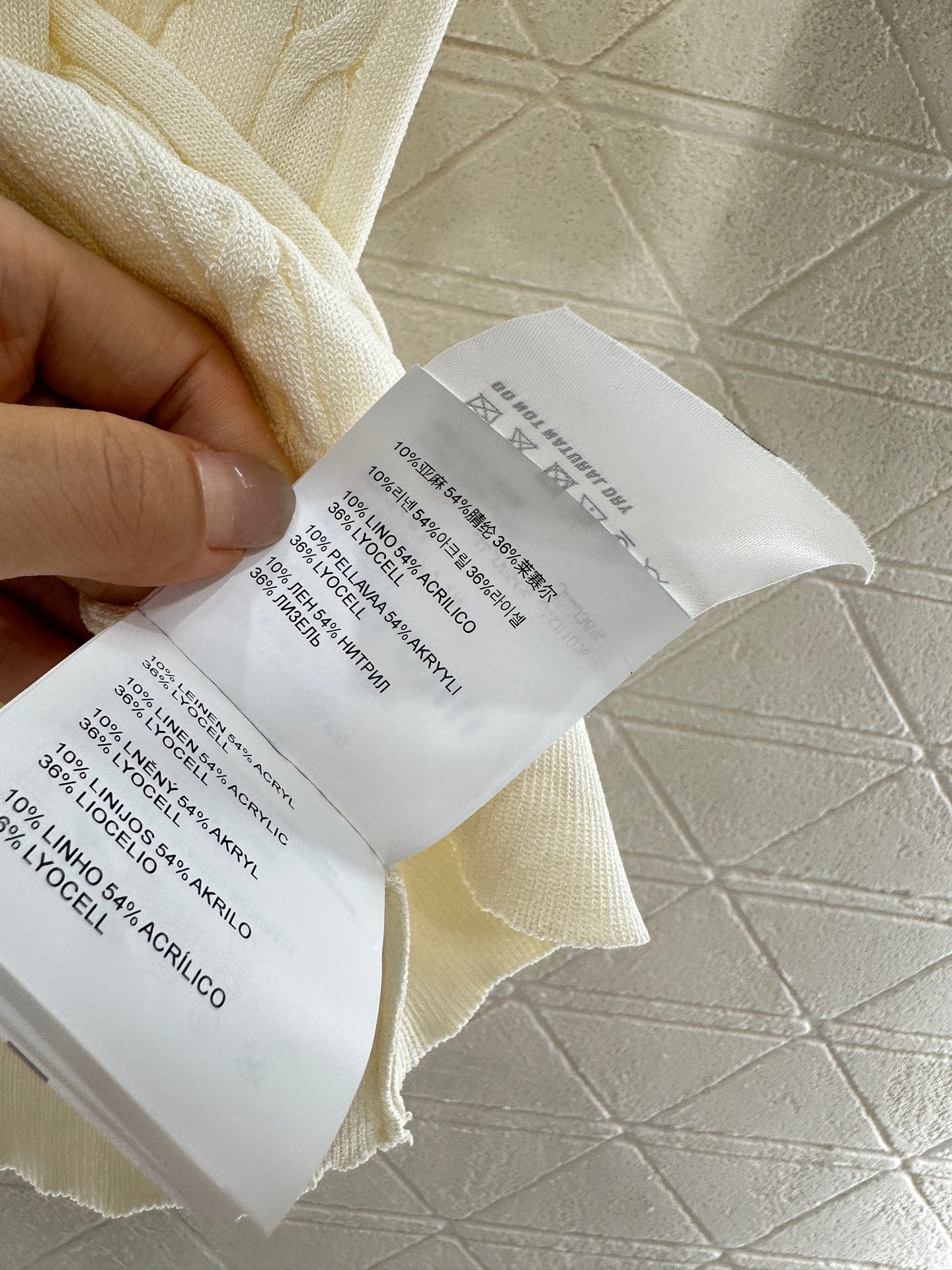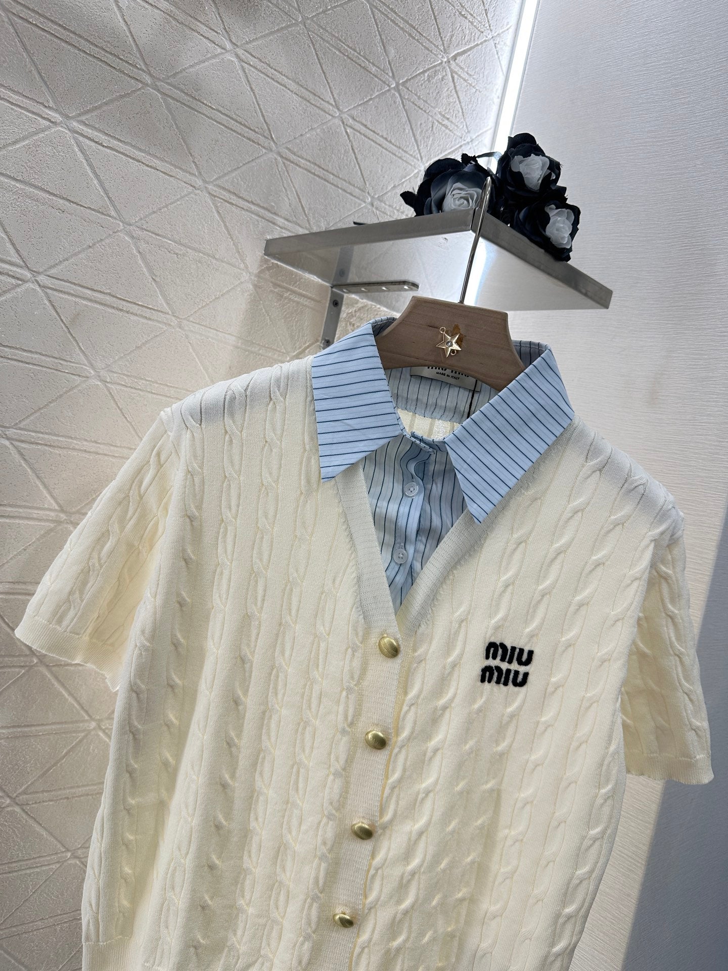 Customized YB linen yarn weaving, comfortable, soft and elastic. Shirt lining "striped V-neck twisted crochet short sleeves" to create a fake two-piece version. The striped lining is exposed at the neckline, forming a color collision with the outer layer. The design is rich in layering. The letter logo is embellished on the chest to highlight the brand's high-end style. The ready-made clothes are comfortable and stretchy, adding a lively atmosphere to the outfit. No deliberate decoration is required to highlight the brand's tone and reduce age and sweetness
