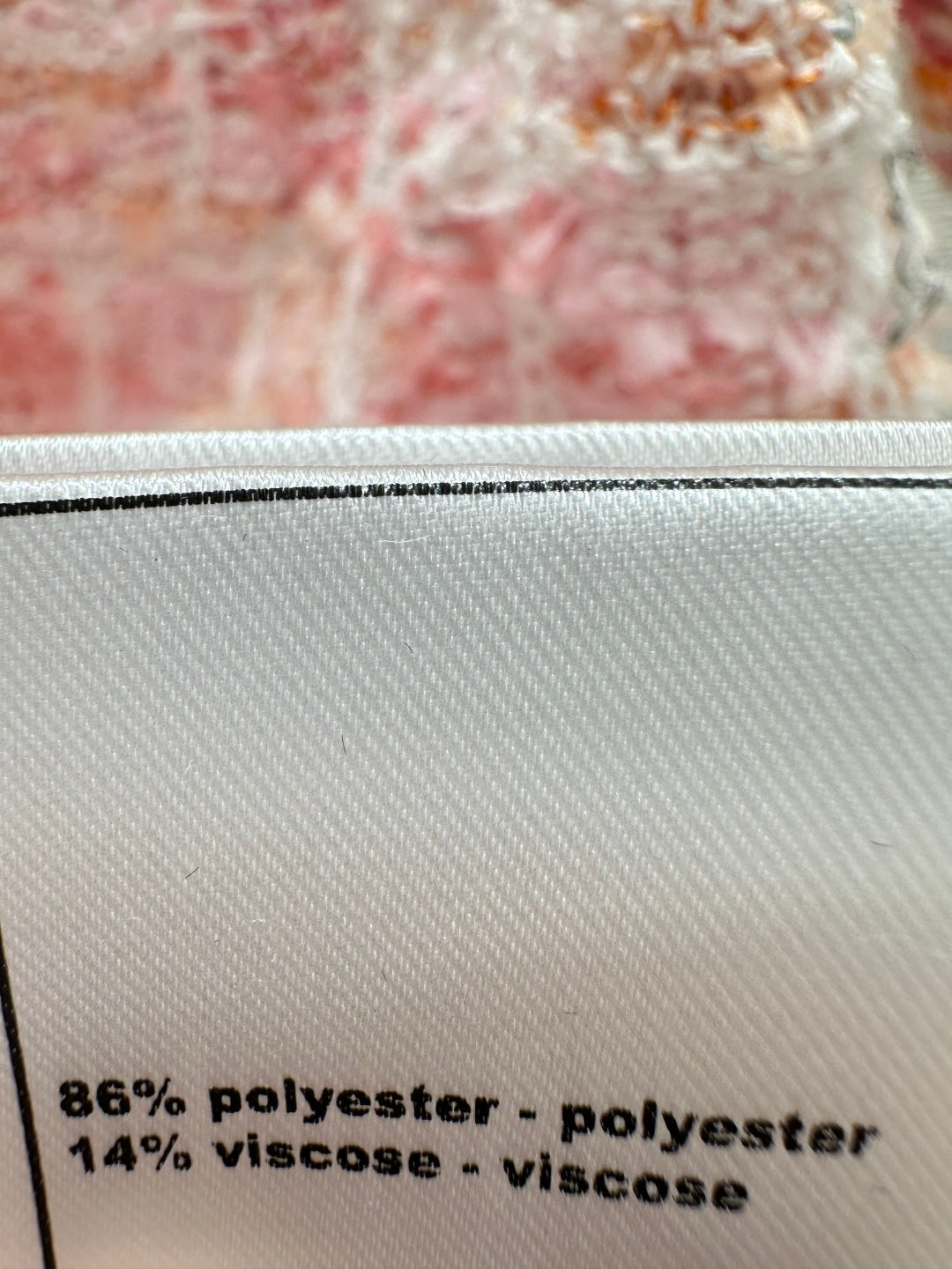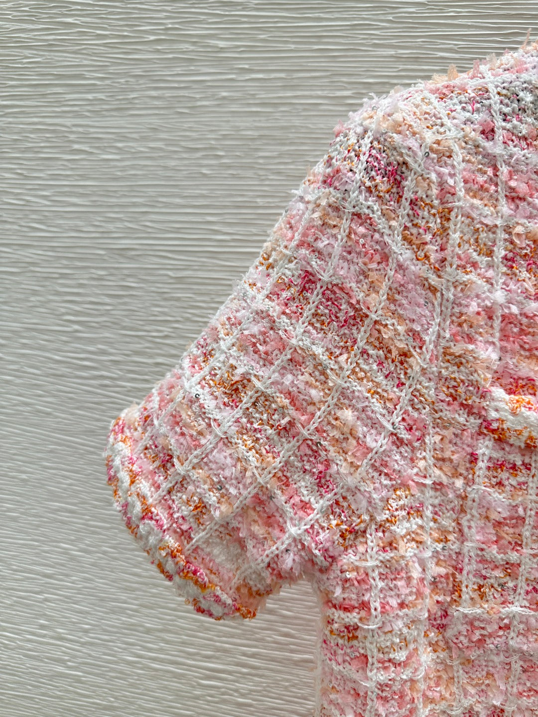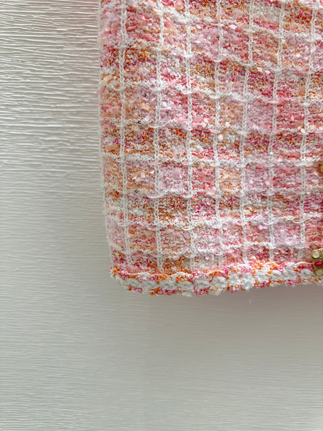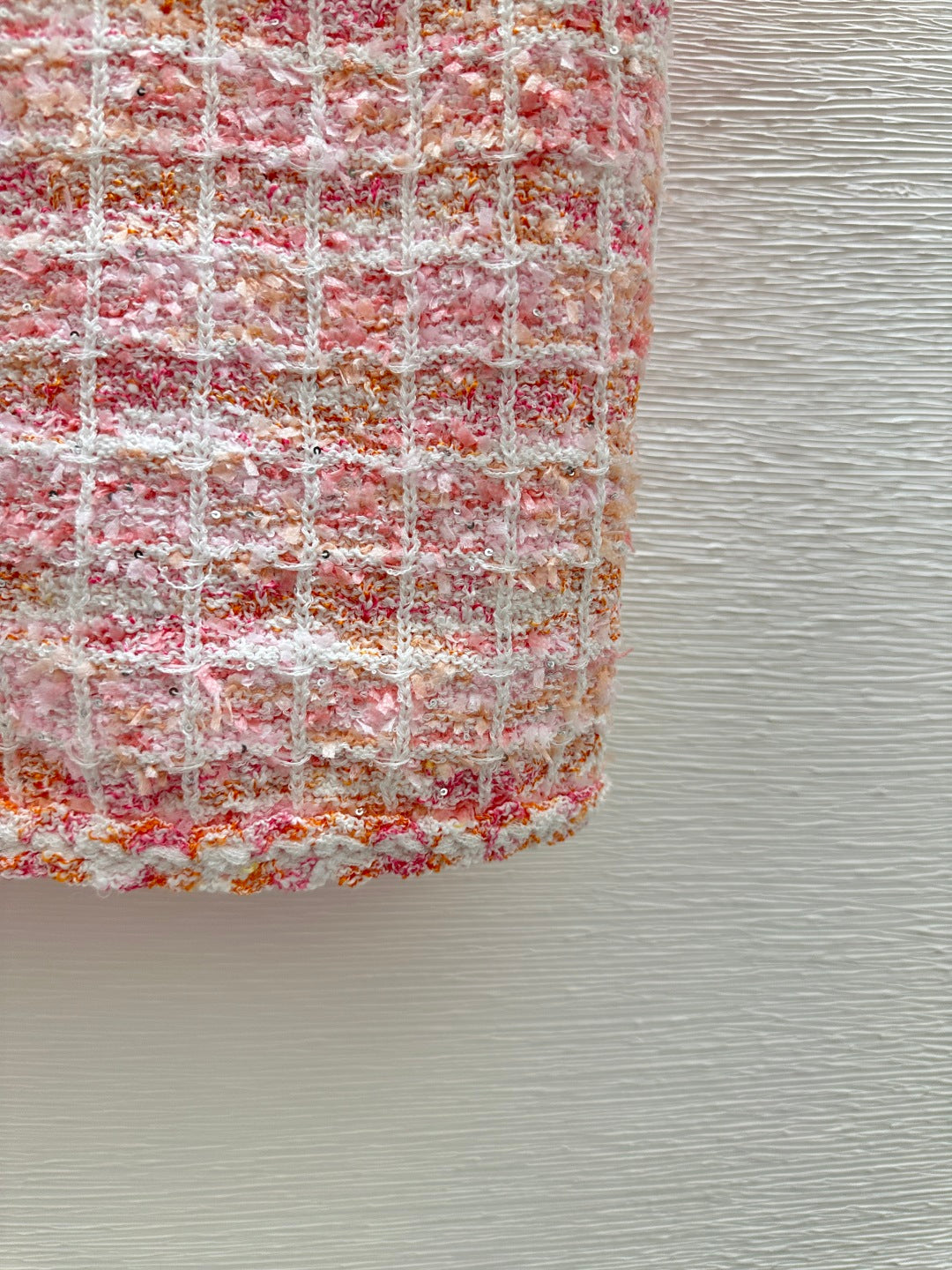 C 25 Cardigan Color Blocking Pink Square Knit Short Sleeve