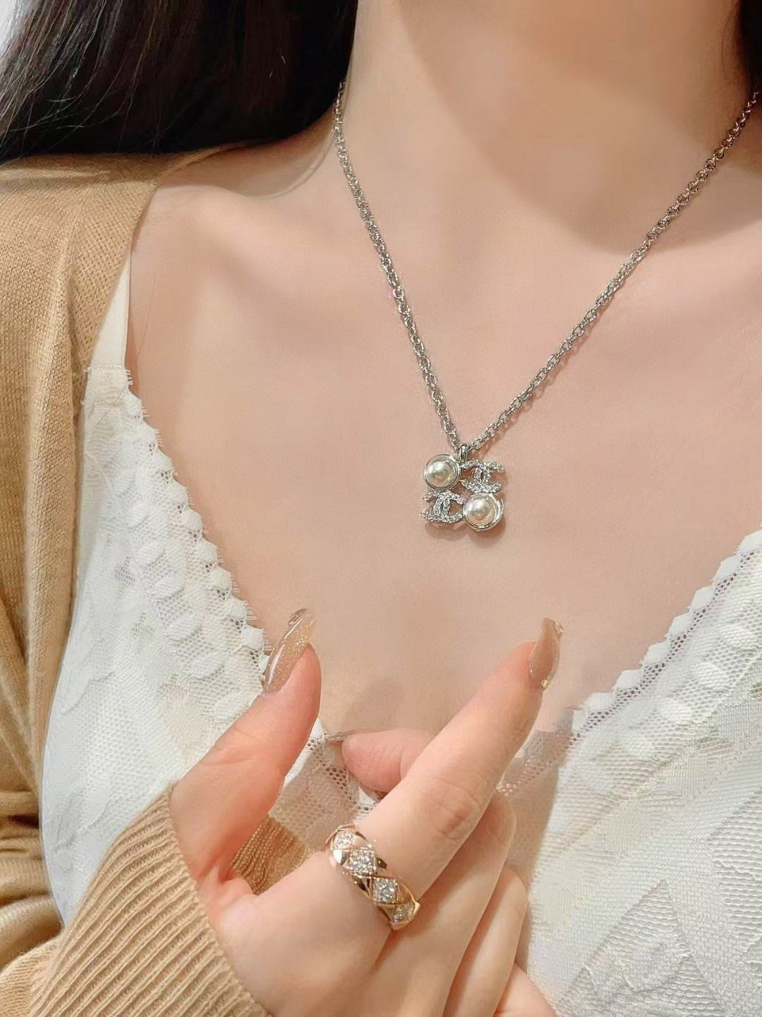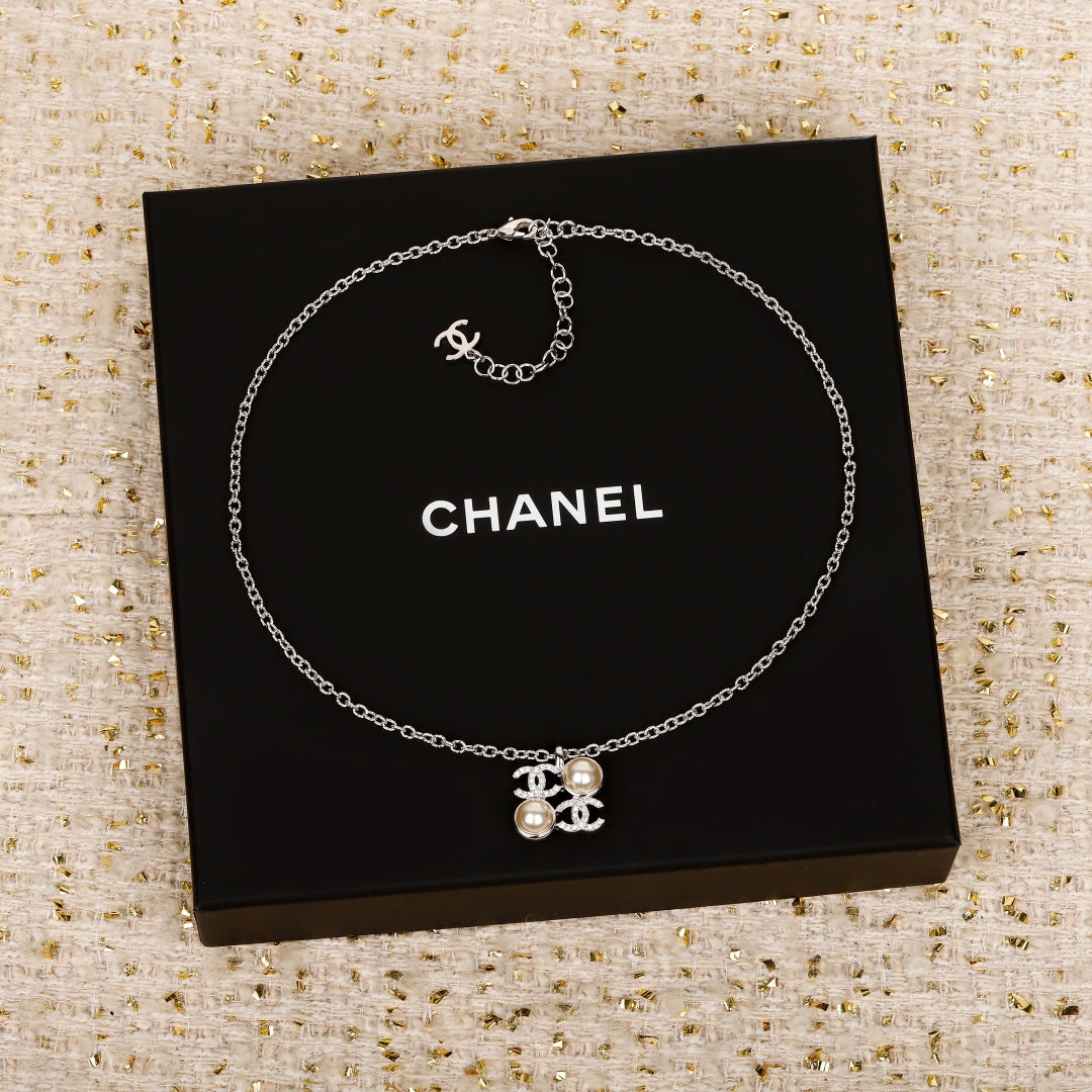 C Rhinestone pearl square chain