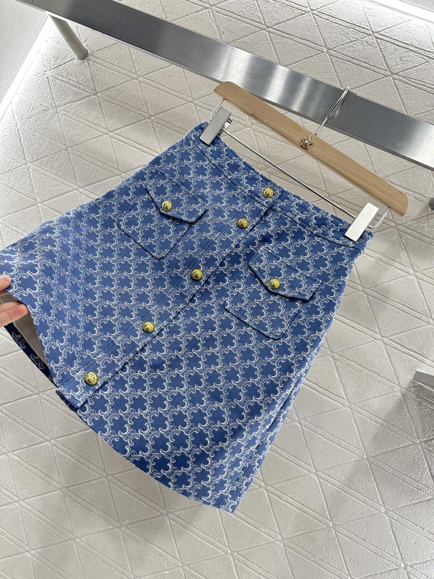 Custom YB denim twill cotton material, multiple washes, presenting a firm texture lapel short jacket cut zipper closure ➕ flap pockets with full body printed Arc de Triomphe embroidery, durable and high-level Chain link is also embellished with the logo to highlight the brand style fashionable and fashionable with the same series of A-line skirt with a number of round buttons, the brand's high-level sense of design pulling the full set or single wear are colorful and fashionable four seasons can be customized fabric and accessories to identify the version of the version of the high-version