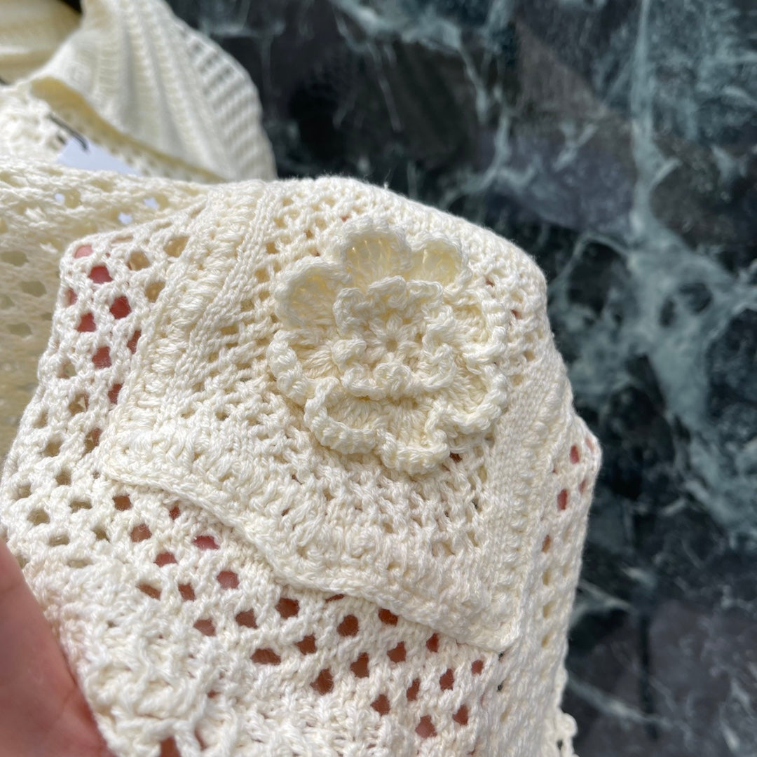 Hand-crocheted flower decoration on the pocket makes the ready-to-wear design rich in layers, showing the brand's high-end style and adding a lively atmosphere to the outfit. It can show the elegant and high-end brand tone without deliberate decoration.