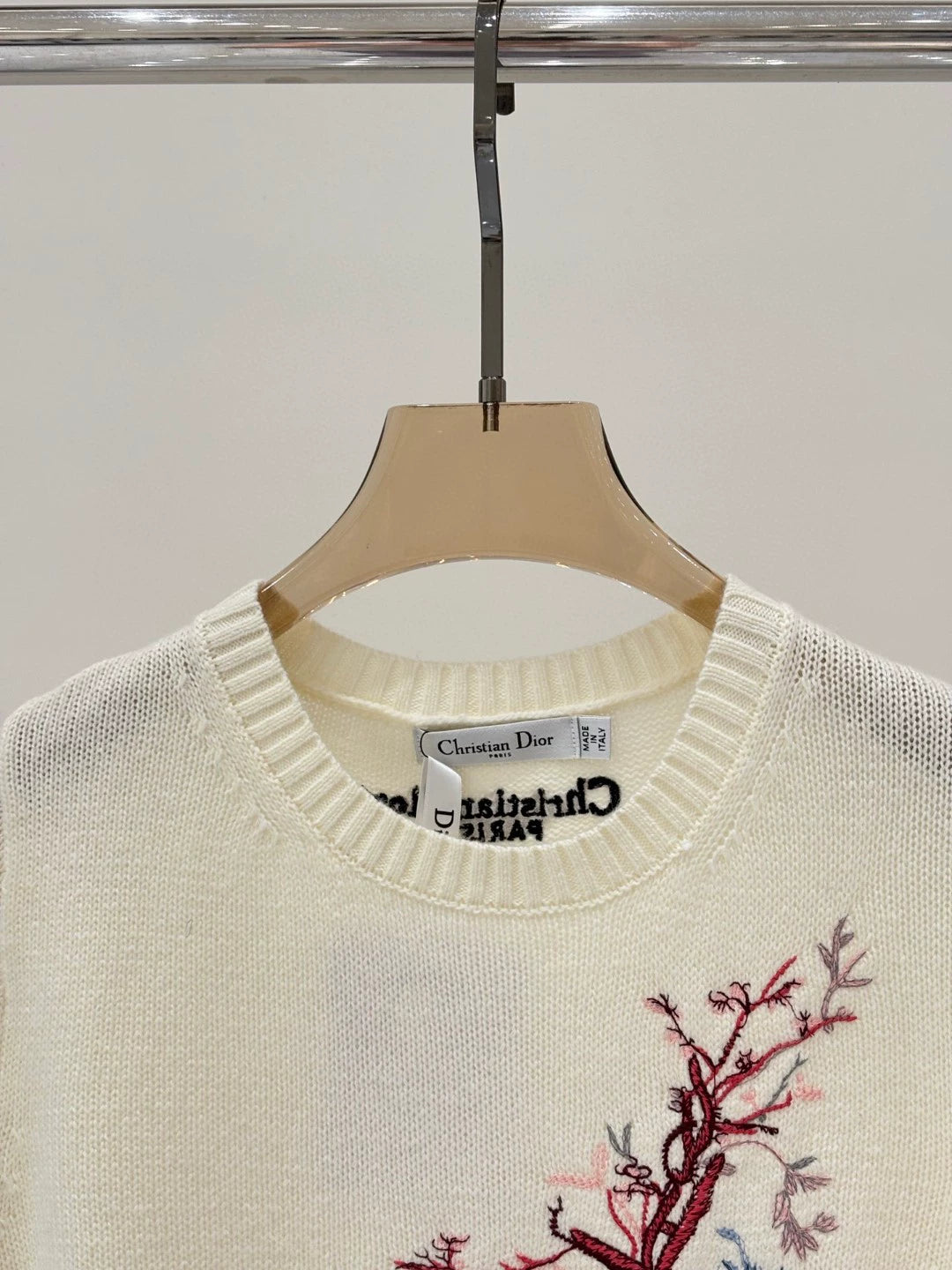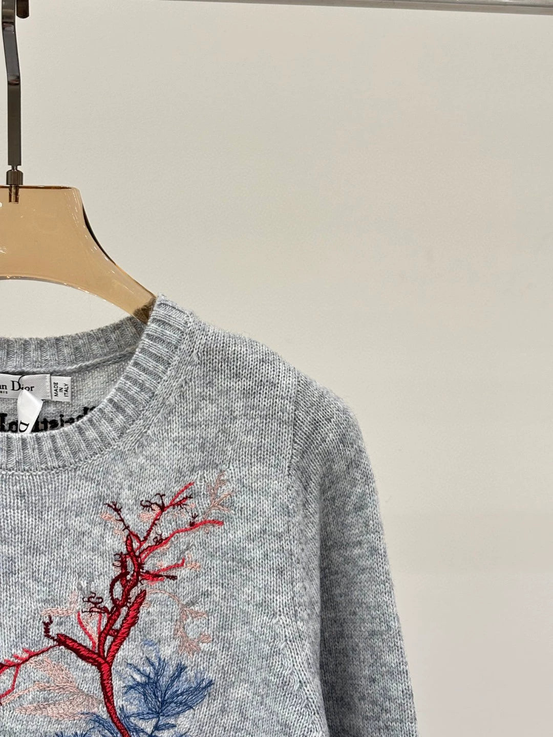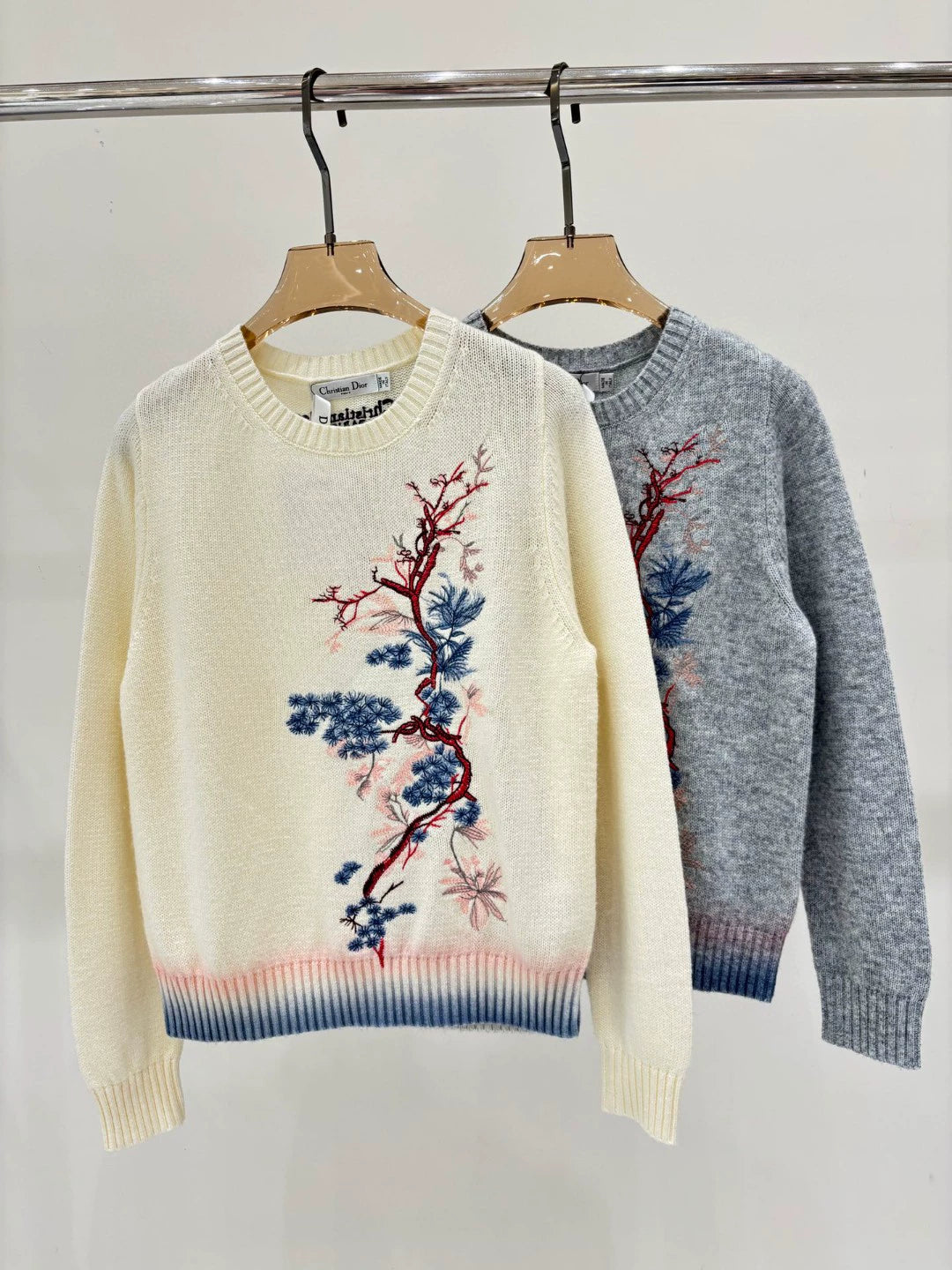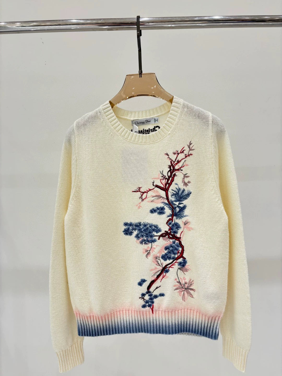 D 25 Spring and Summer New Round Neck Pine Branch Embroidery Jacquard Knitted Long Sleeve