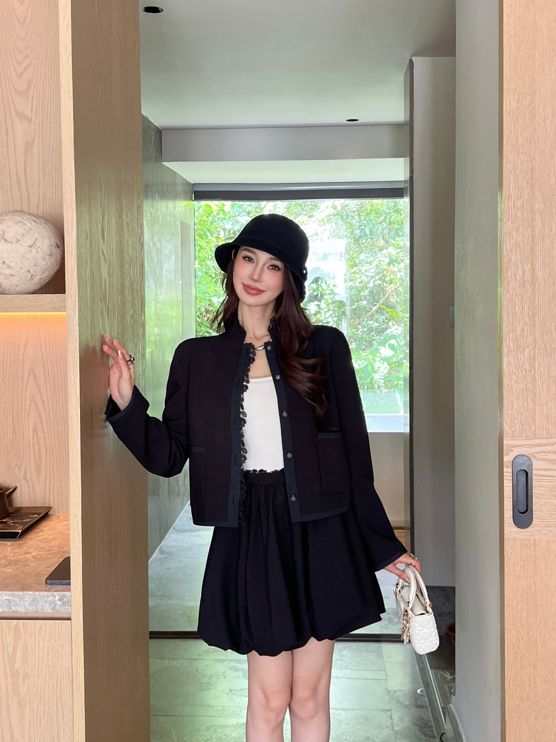 Di 25 New lace stand collar suit jacket(BEIGI/BLACK)