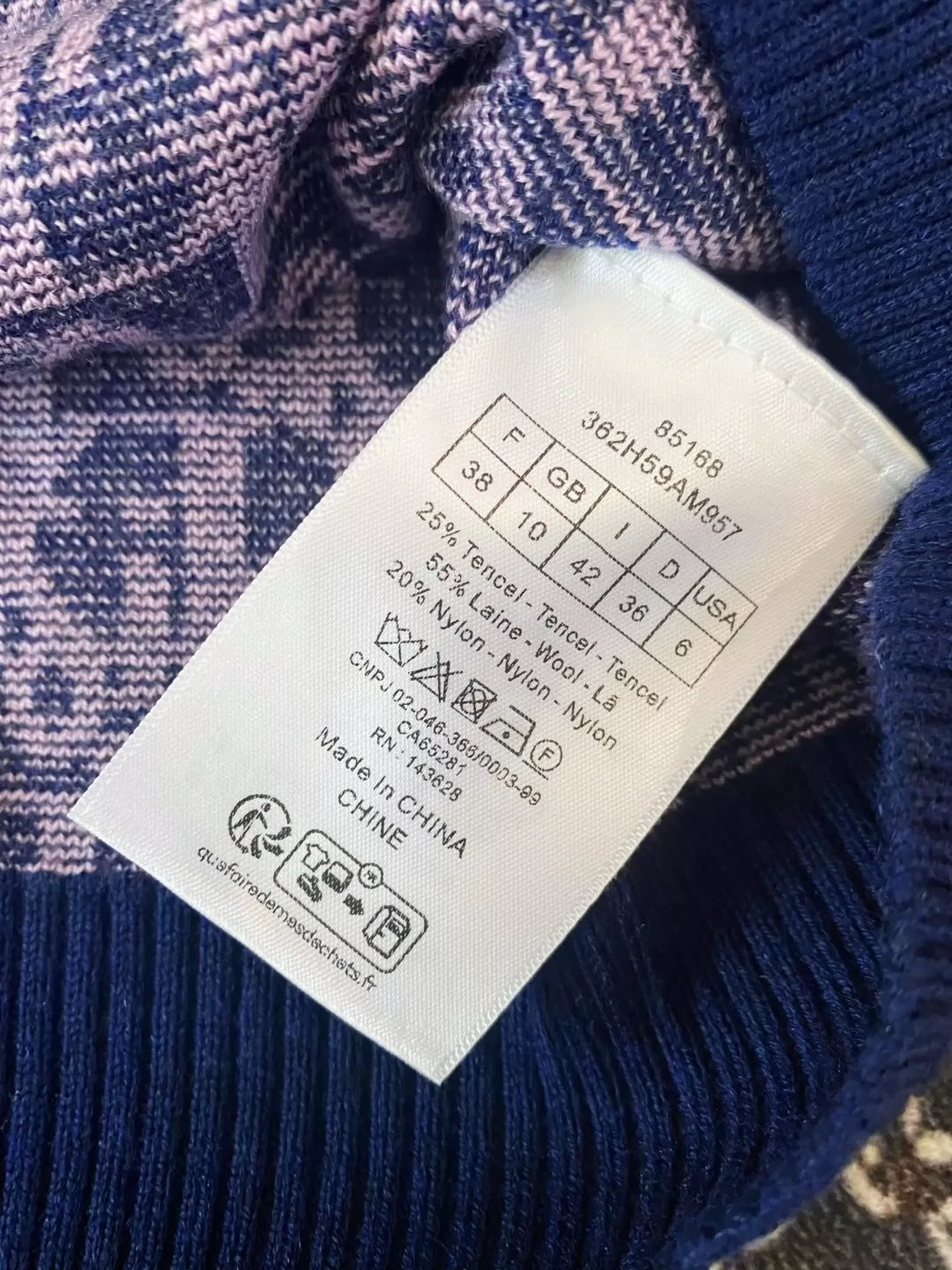 D 25 New Color Block Letter Single Breasted Navy Neck Short Sleeve Knit Top
