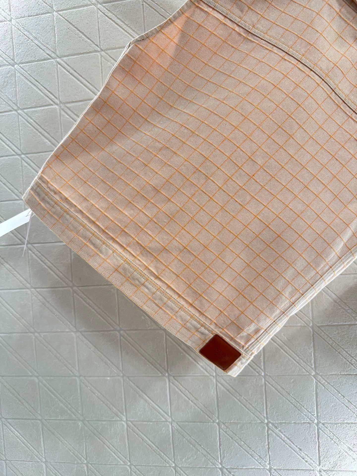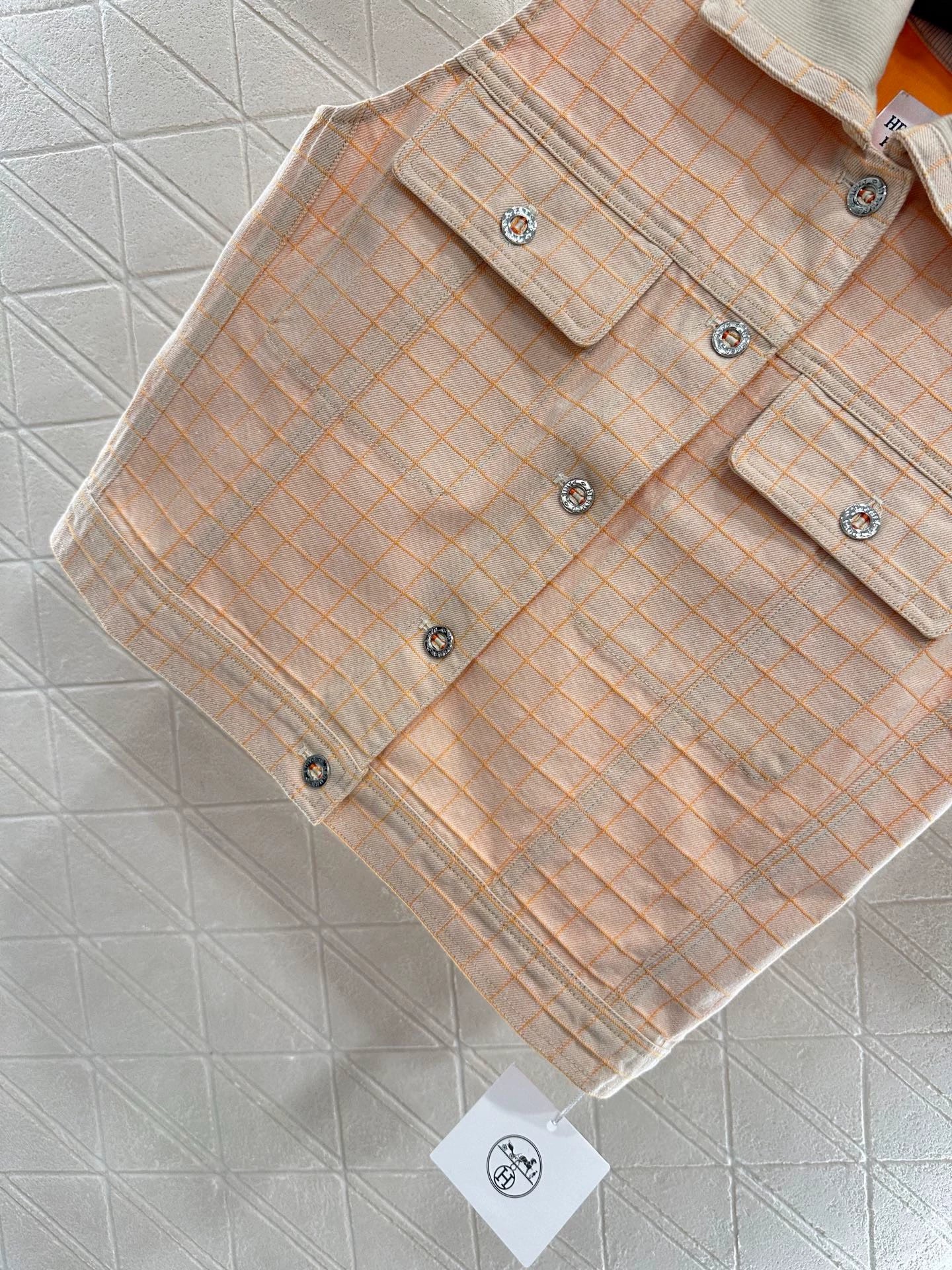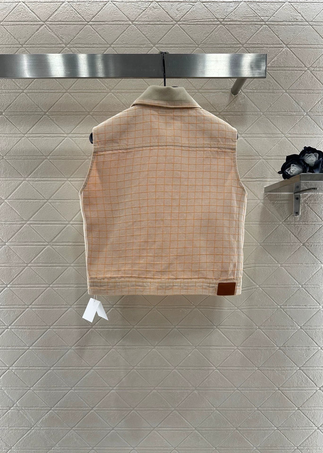 Customized YB twill cotton denim for a premium feel and stylish fit. The lapel vest features an all-over positioning check pattern, creating a simple yet stylish look while showcasing the brand's premium style. Embellished with monogrammed round buttons, the symmetrical flap pockets add a touch of detail, and a leather back waistband adds a finishing touch. The clean, flattering silhouette effortlessly enhances a sophisticated look, perfect for casual, everyday wear. Custom fabrics and accessories are available. Look for the latest version.