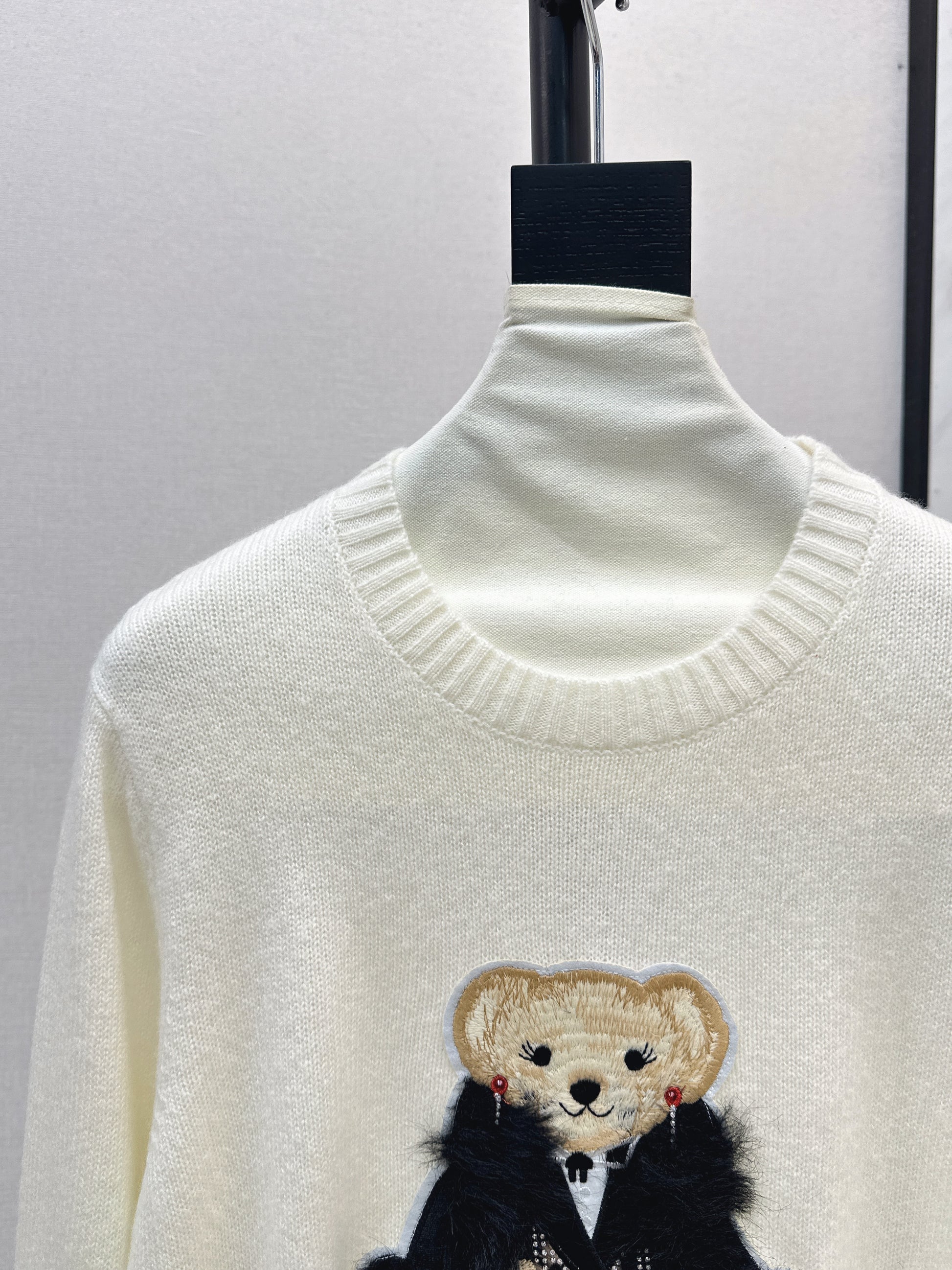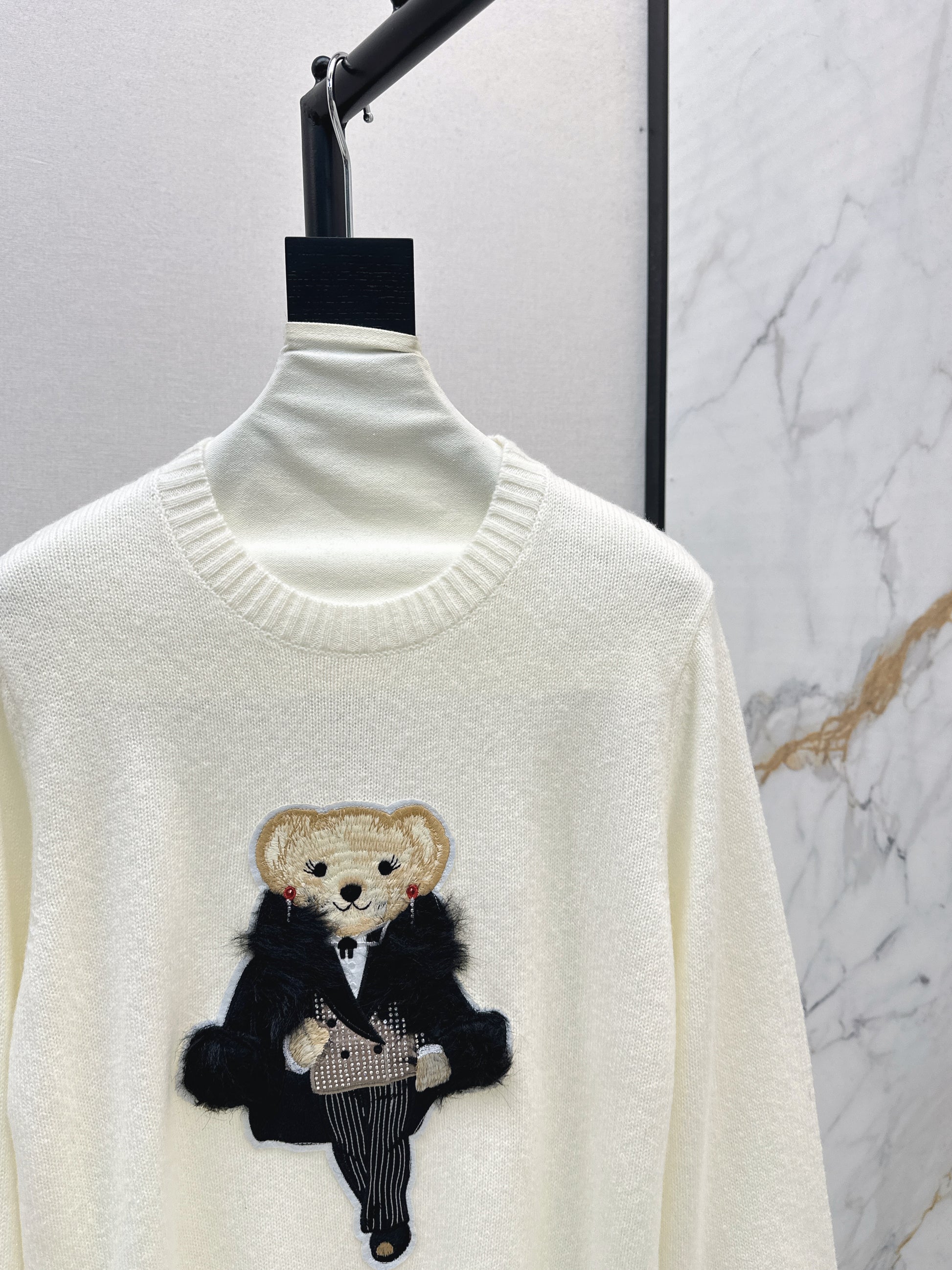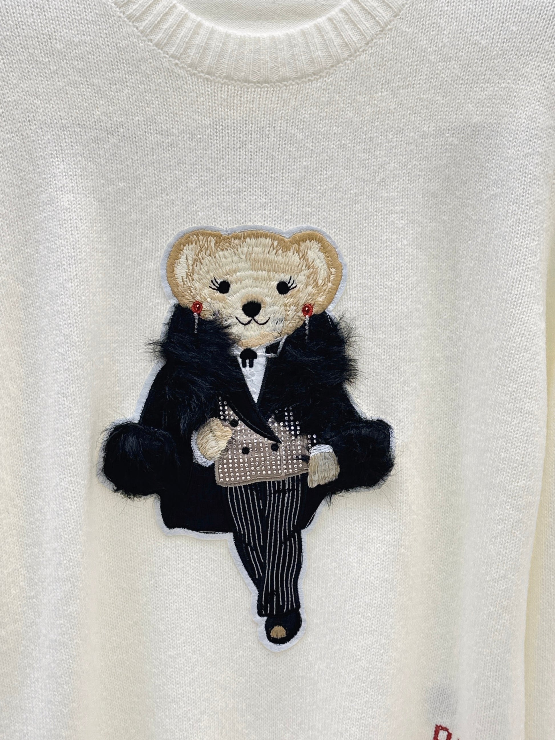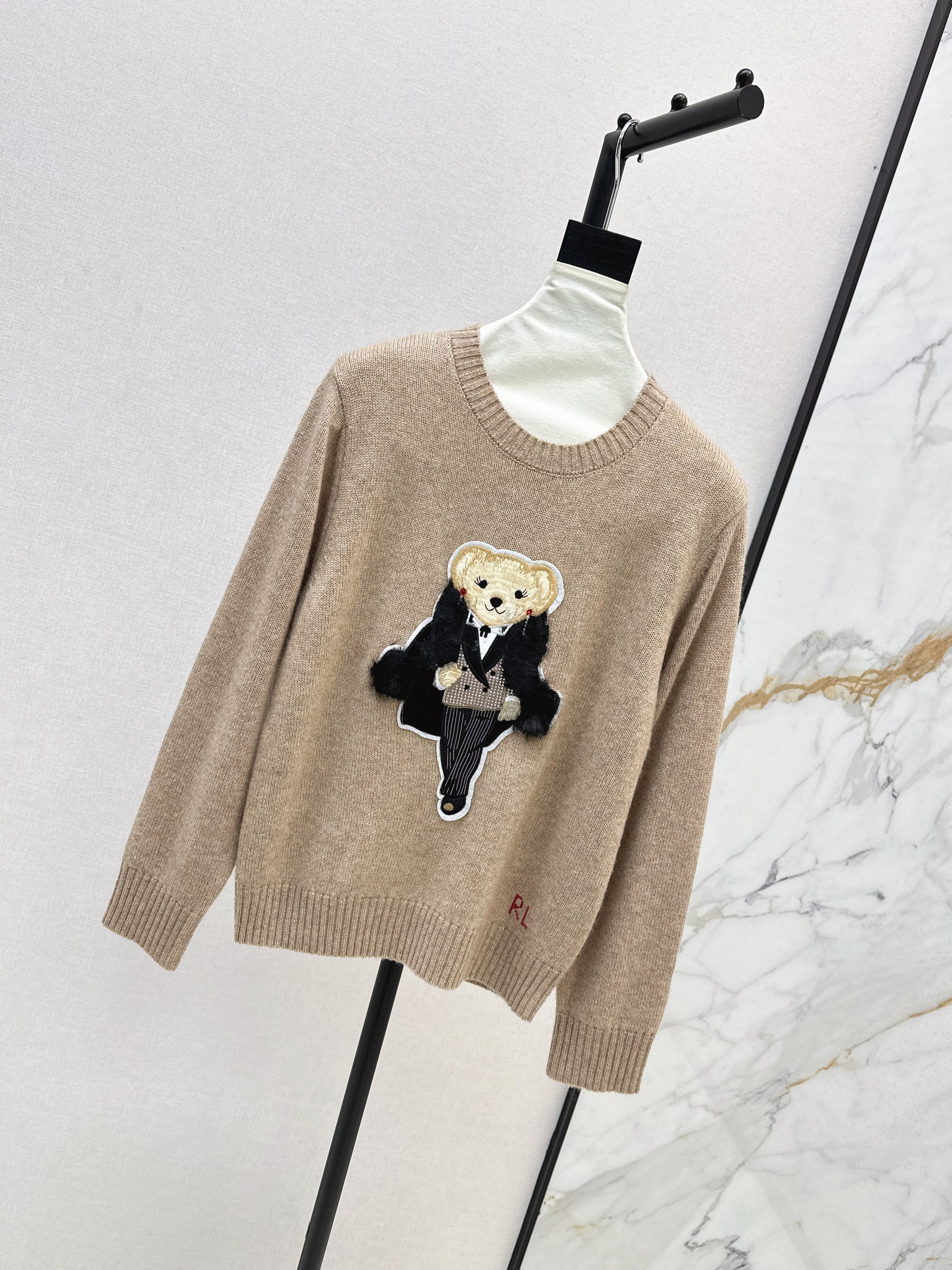 Ral 25 New Bear Embroidered Crew Neck Sweater(white/khaki)