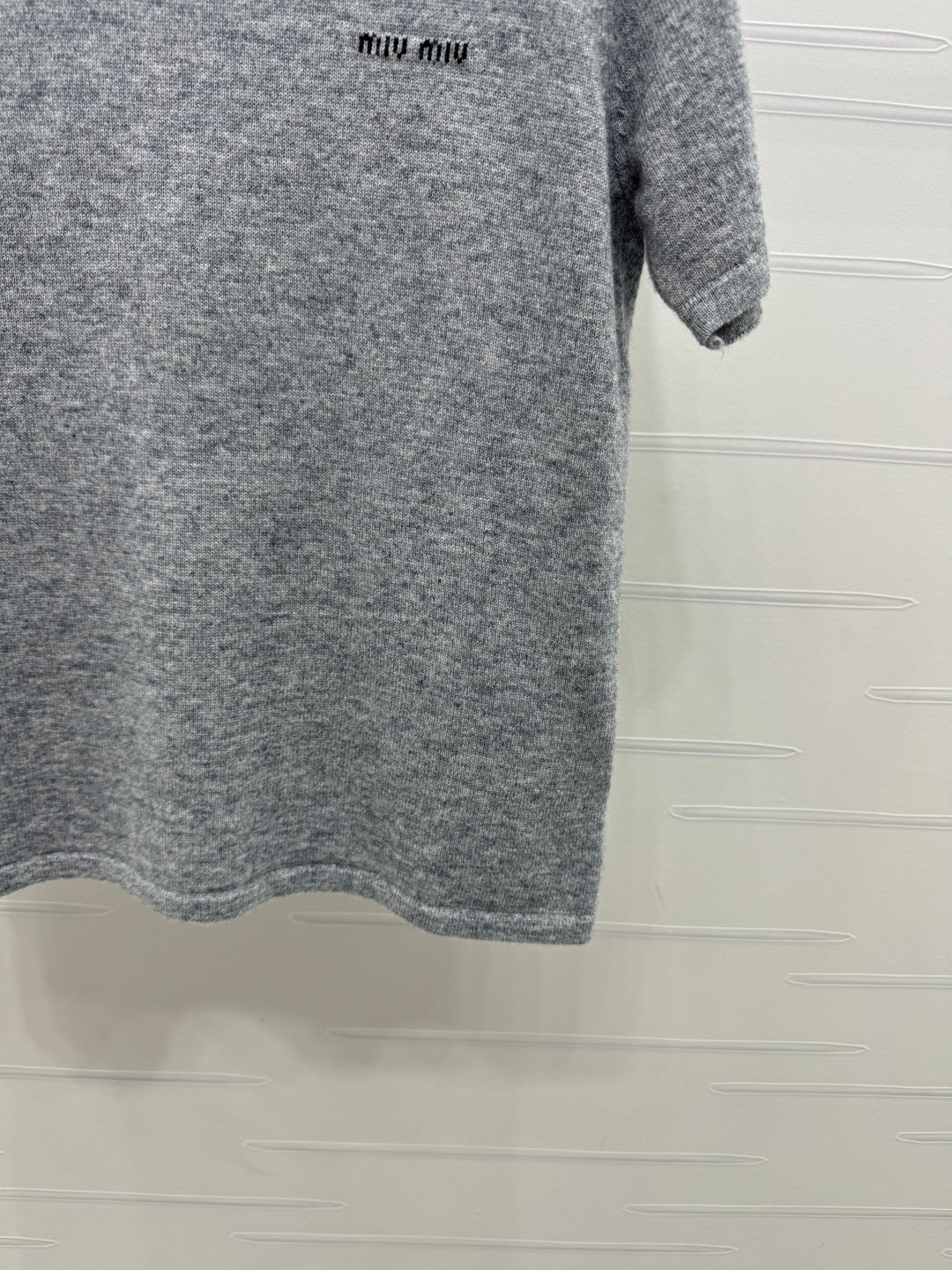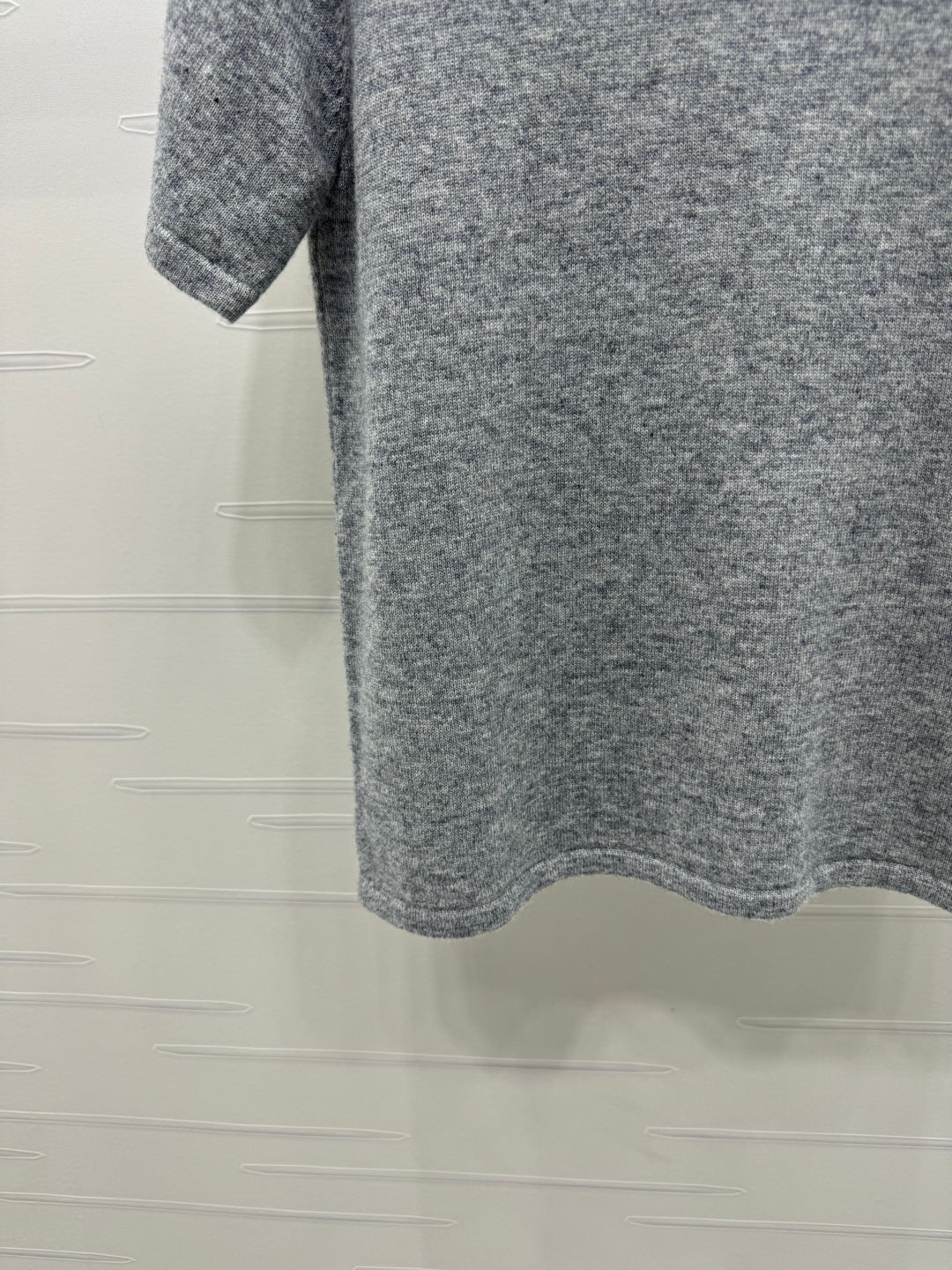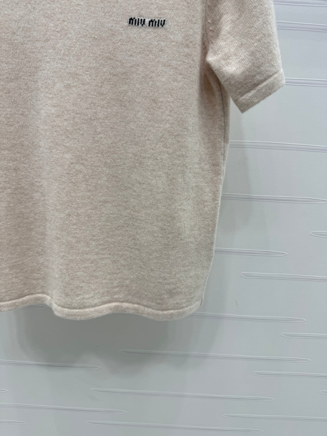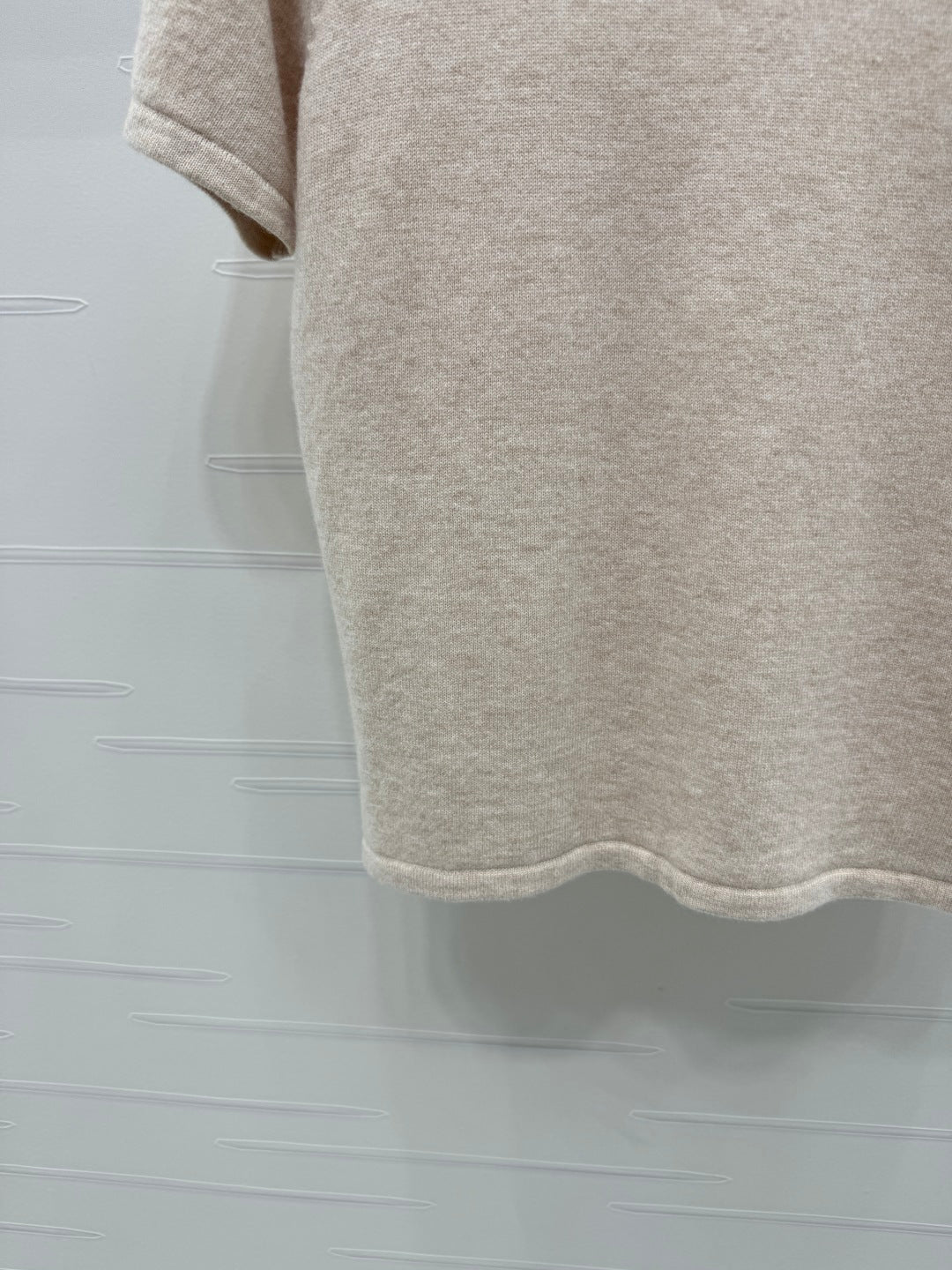 Custom wool yarn material, delicate texture, soft and comfortable, high collar knitted short sleeves, vertical striped knitted texture throughout, with elastic fabric, fits the body shape more slimming and curvaceous, decorated with letter logo on the chest to show the brand tone, versatile style regardless of age and skin color, match with skirts and pants, suitable for slimming, fashionable and retro style