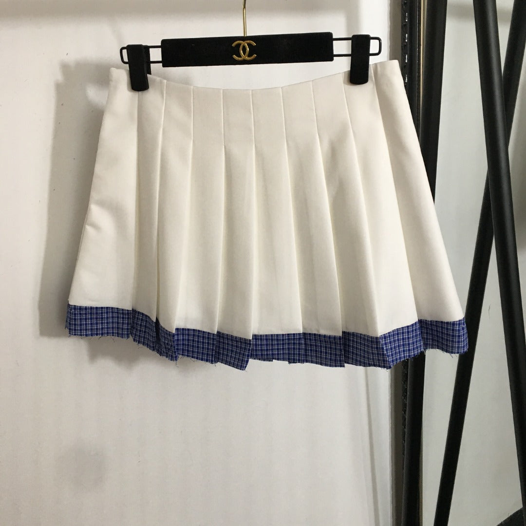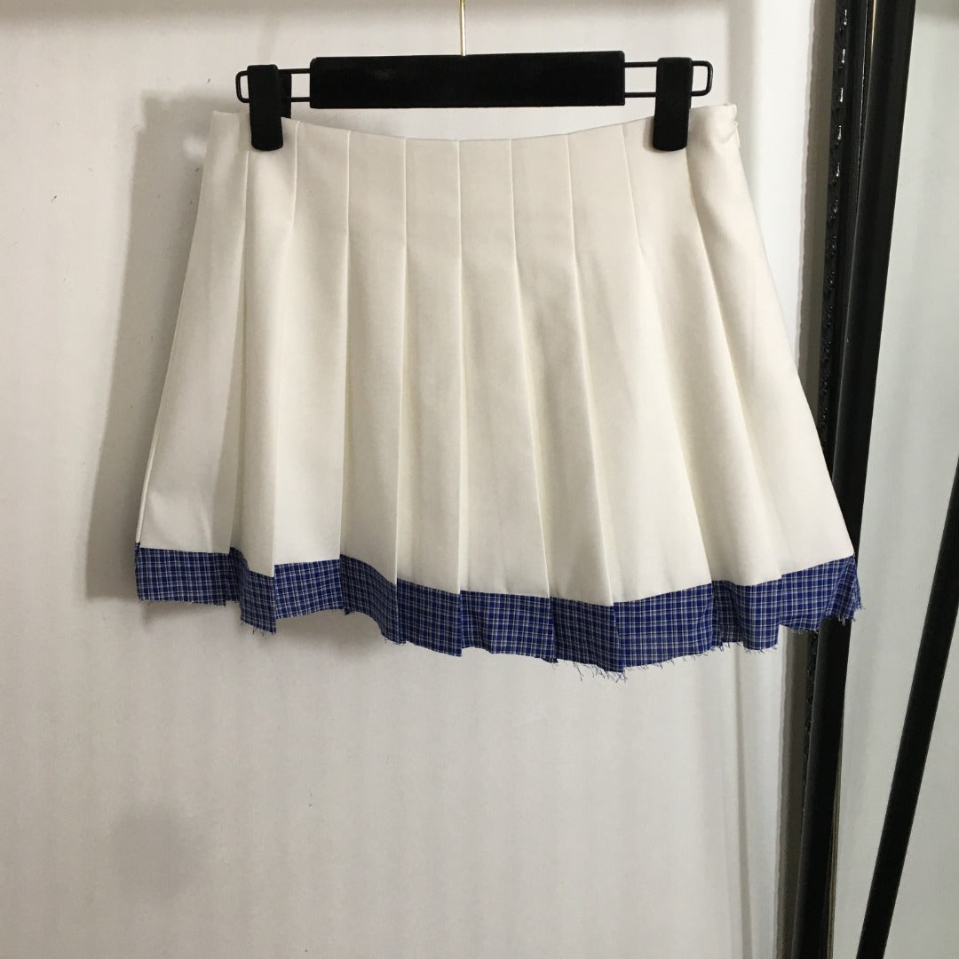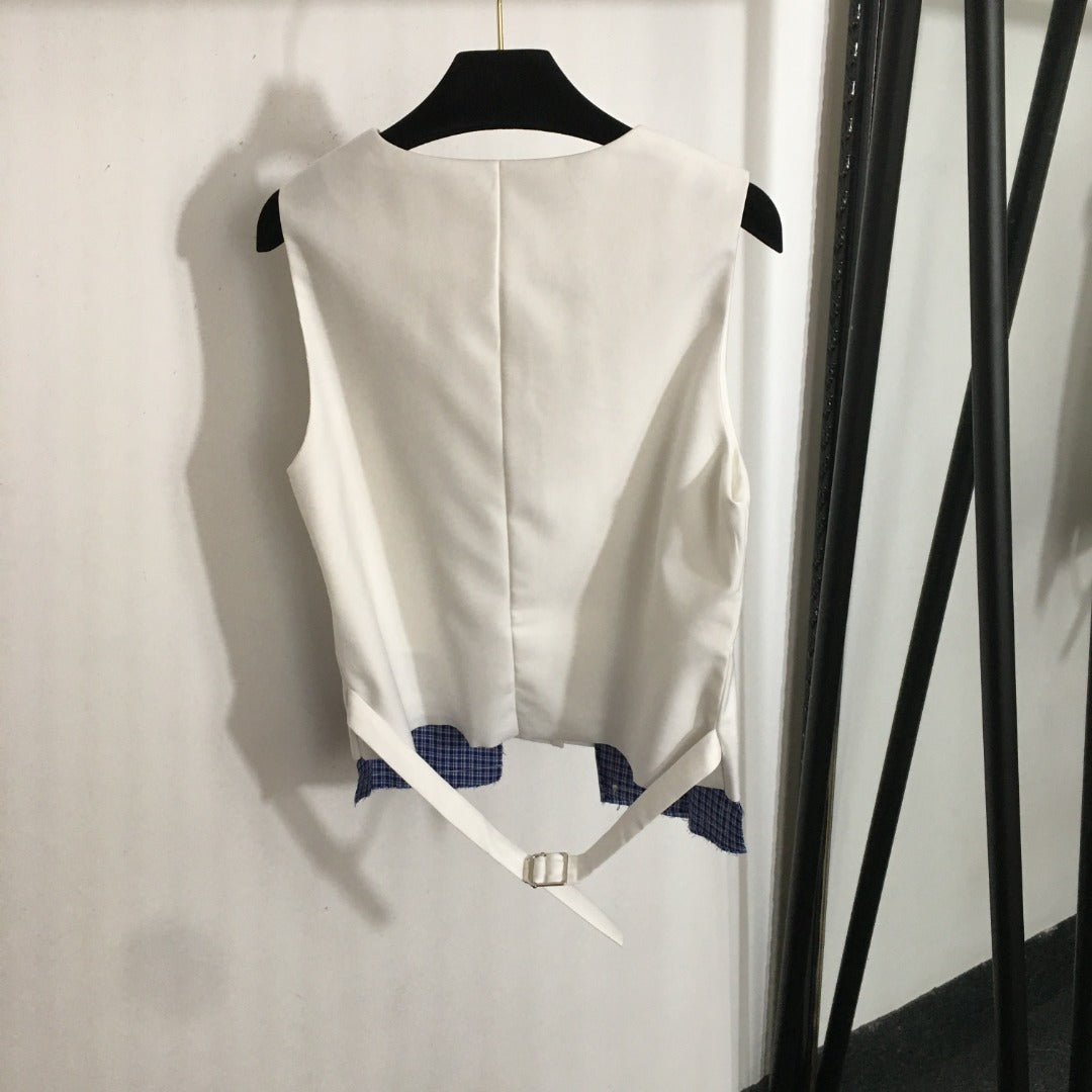 25 Summer new letter logo embroidered patch V-neck suit vest jacket + plaid splicing pleated short skirt suit