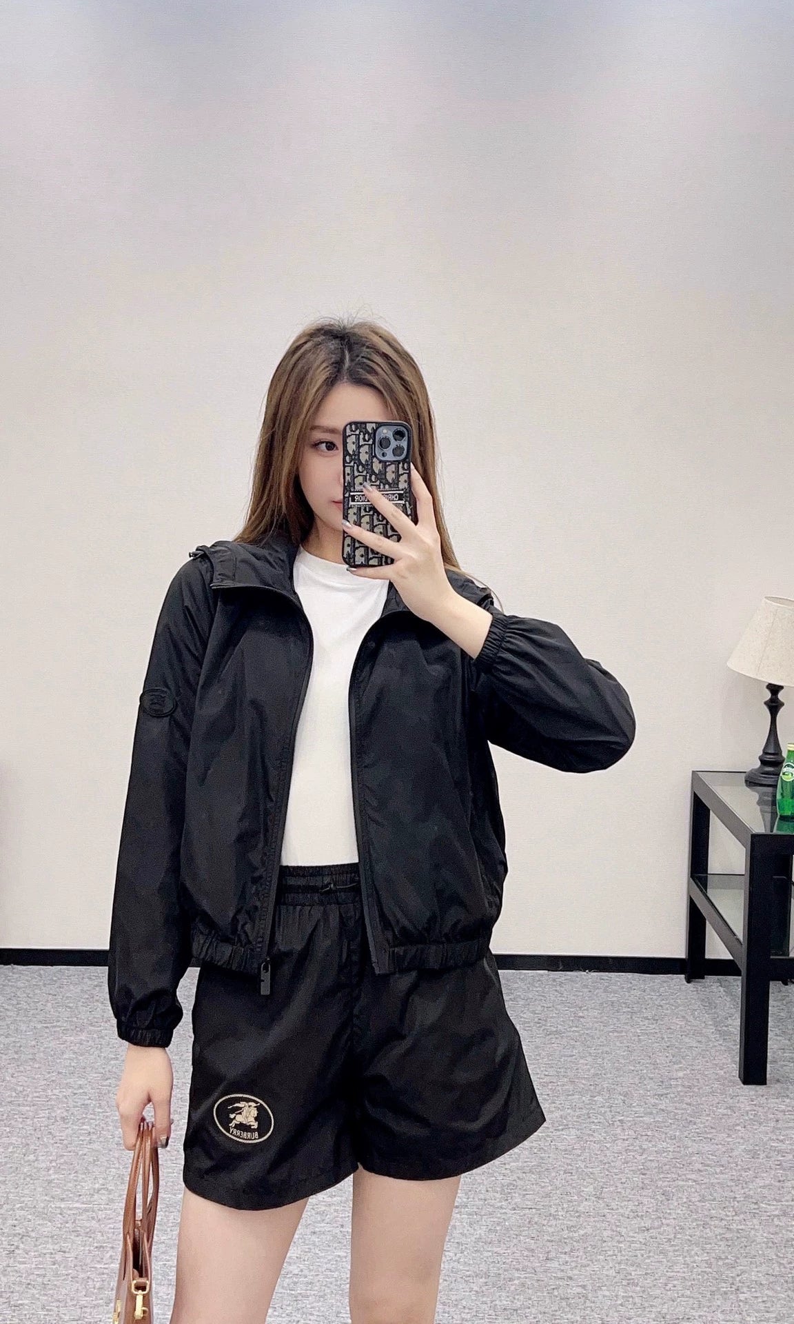 Bu 25 Spring/Summer Hooded Sun Protection Jacket Shorts Set(Black,khaki)