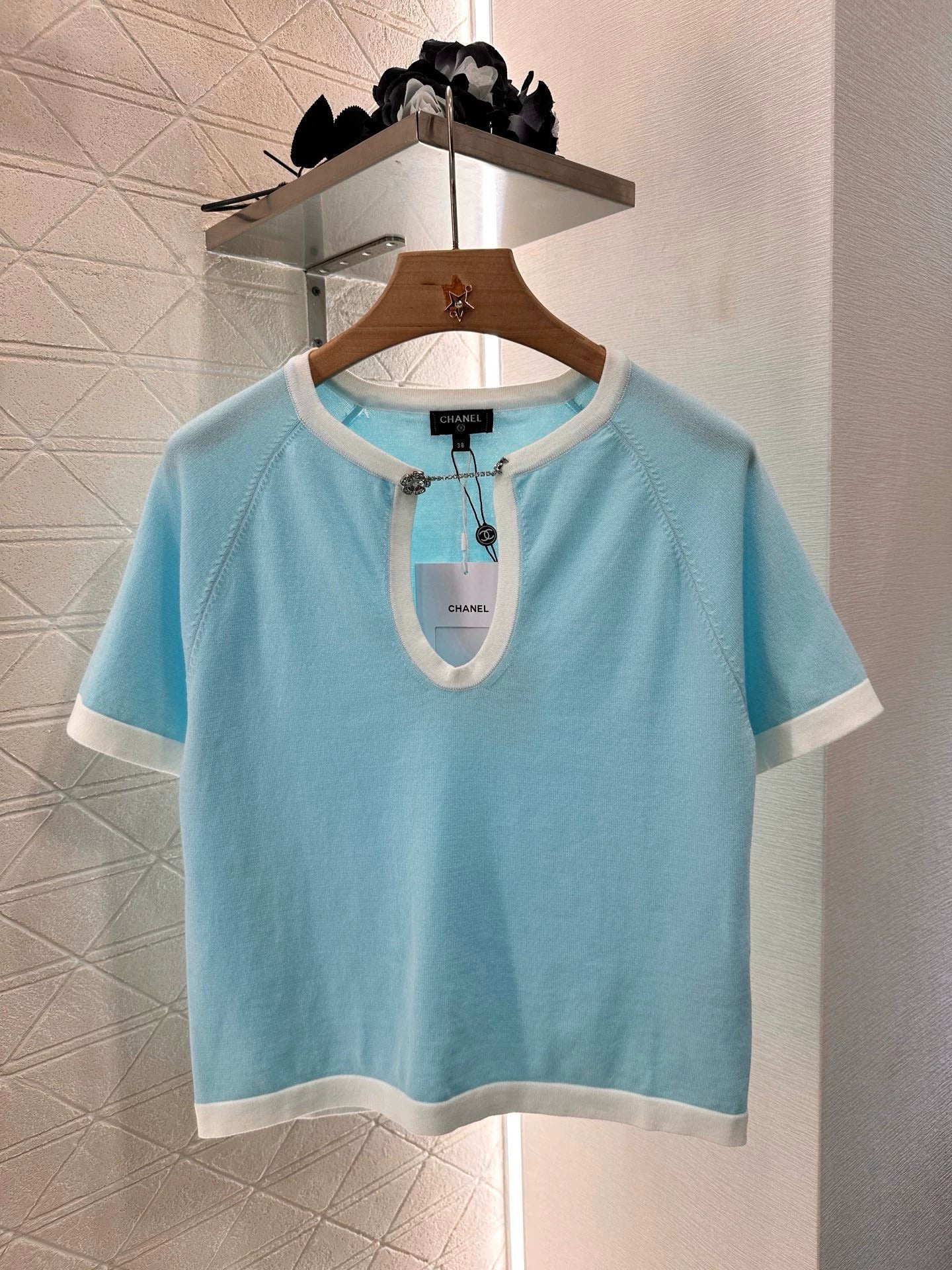 C 25 Chain Short Sleeve Top Half Skirt Set(Blue Navy)