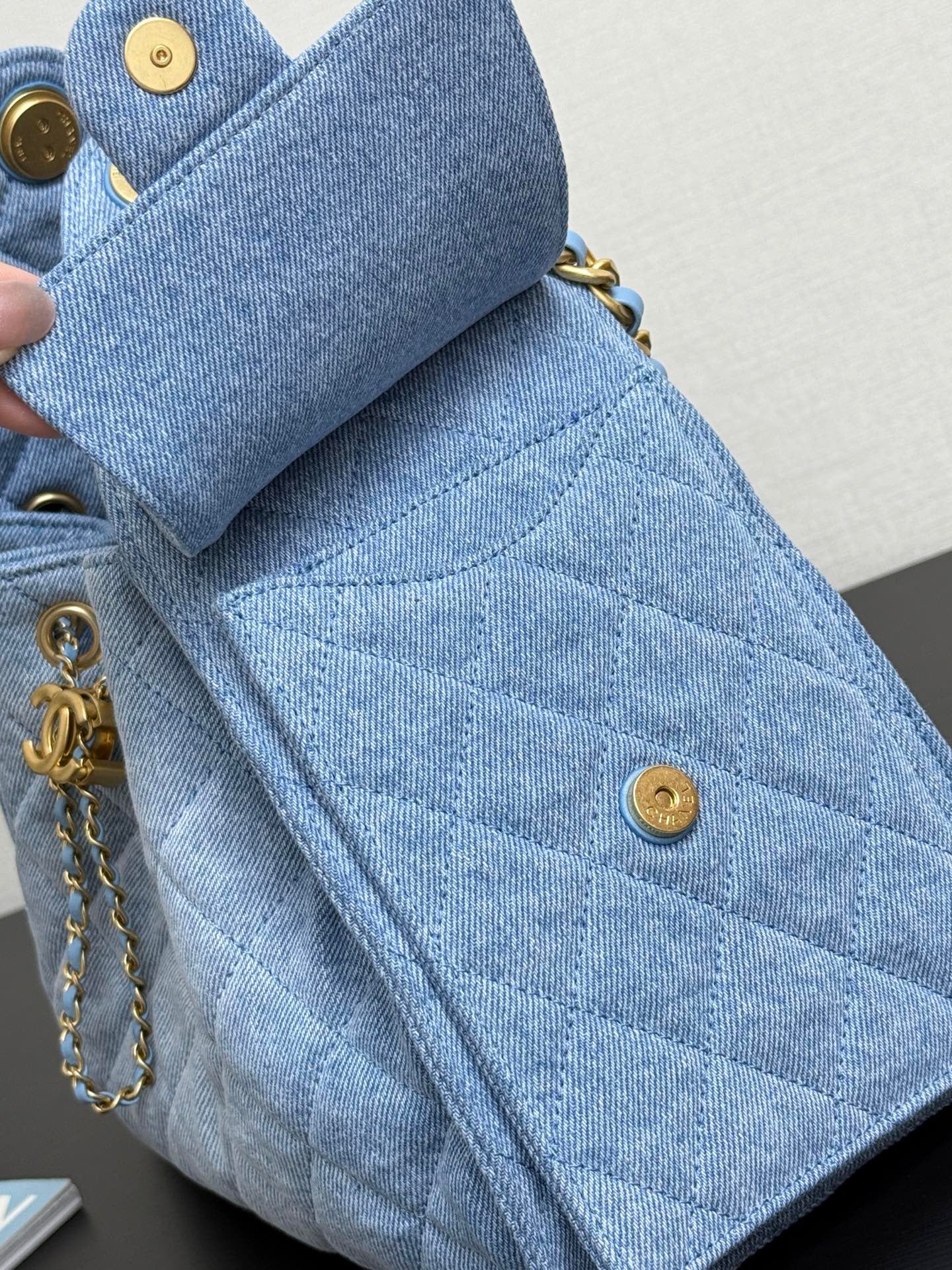 C 25 Denim Light Blue Bucket Drawstring Bag