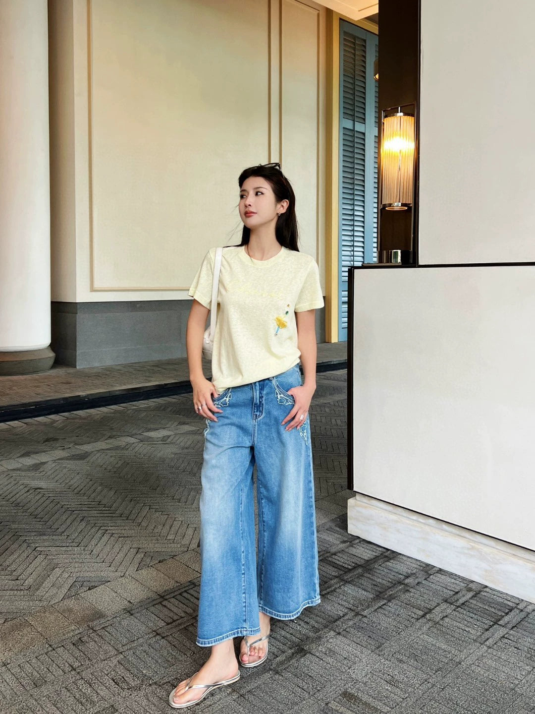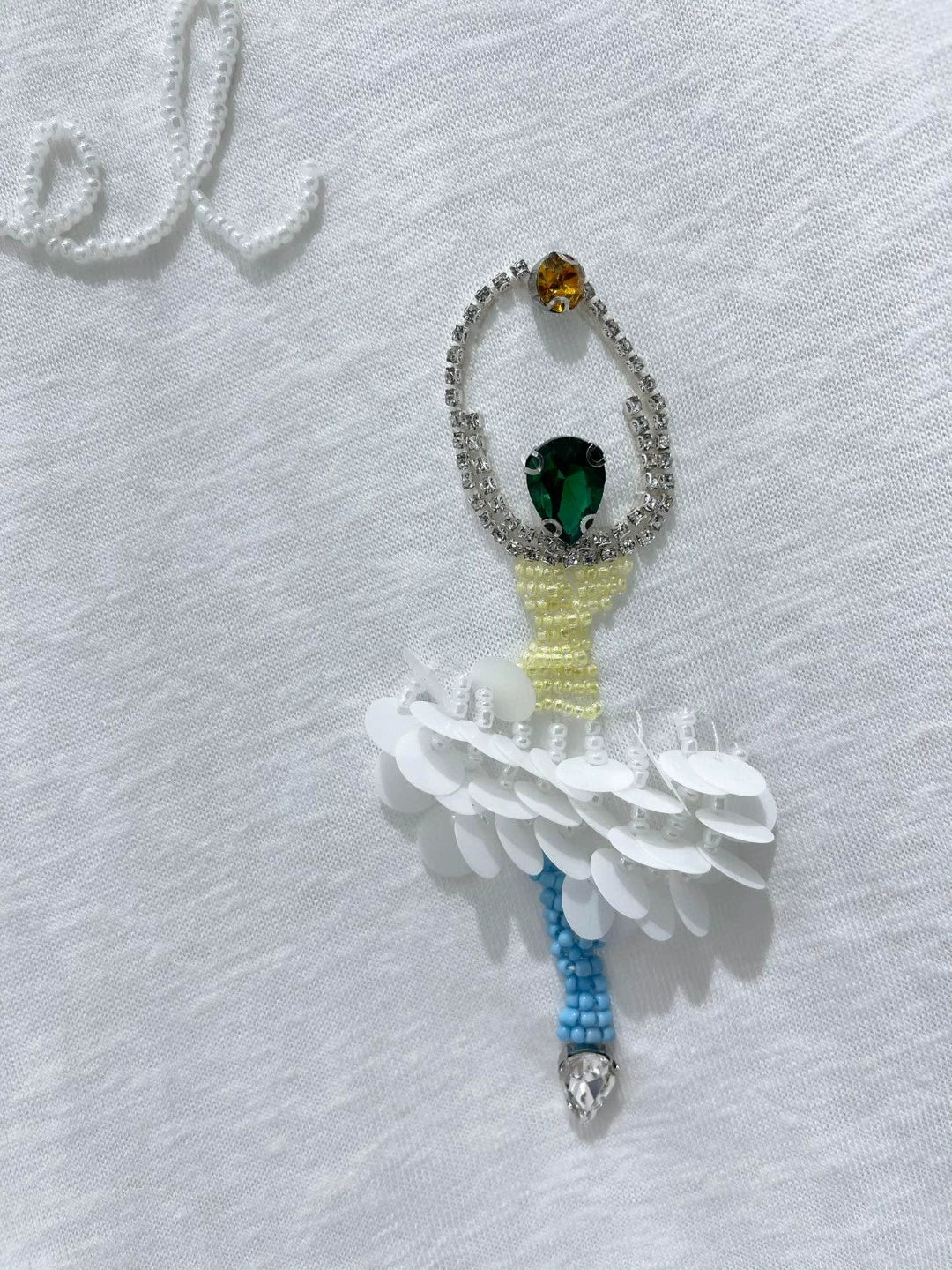 C 25 New Handmade Beaded Dance Cotton Round Neck Short Sleeve T-Shirt