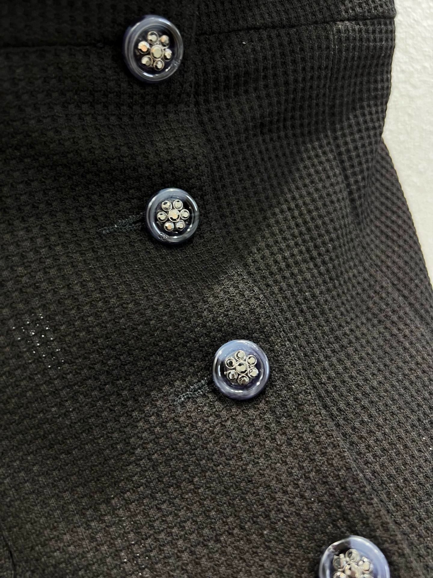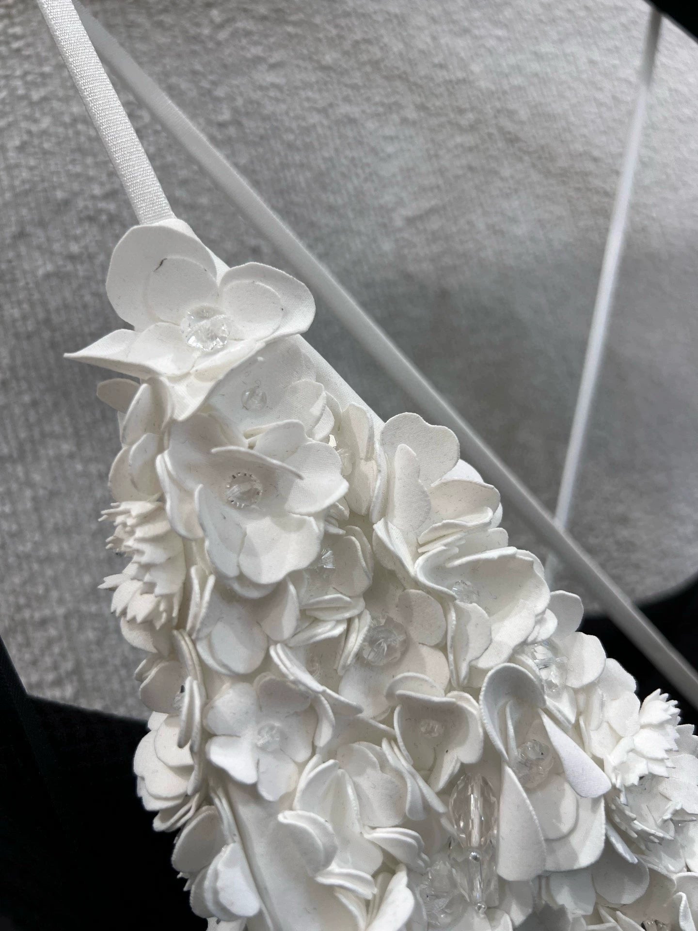 Using mixed fiber waffle jacquard fabric, the unique texture gives the fabric a three-dimensional and textured feel, skin-friendly and breathable. The tube top and camisole are innovatively spliced to create a fake two-piece effect. The three-dimensional small flowers with multiple splitting processes at the triangle cup are embellished with transparent crystals, adding a romantic and sweet atmosphere to the whole dress. It is very elegant when paired with a skirt