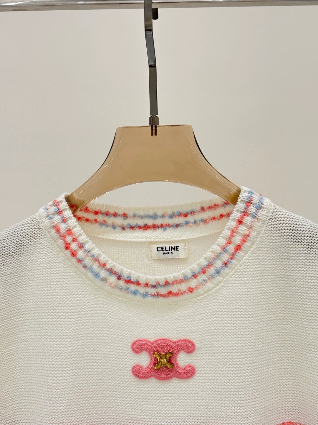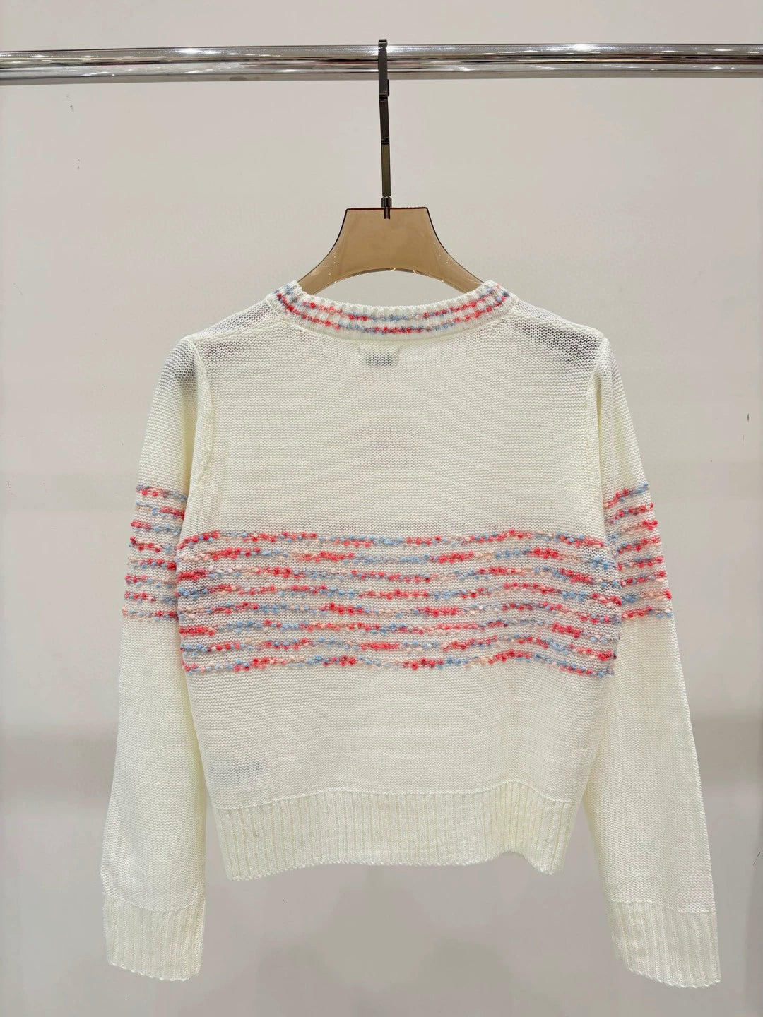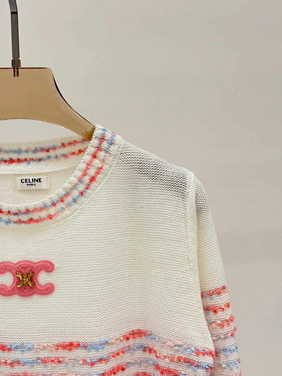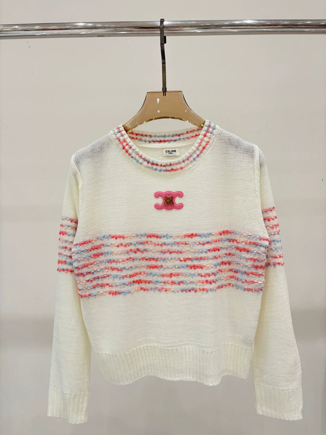 CE 25 Spring and Summer New Round Neck Letter Logo Logo Stripe Mixed Color Knitted Long Sleeve