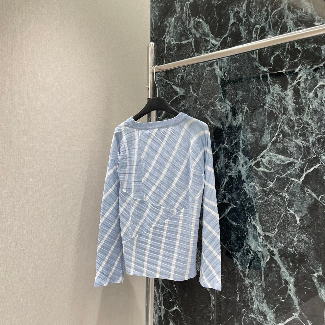D 25 Early Autumn New Style Fake Two-piece Splicing Diagonal Stripe Knitted Long Sleeves
