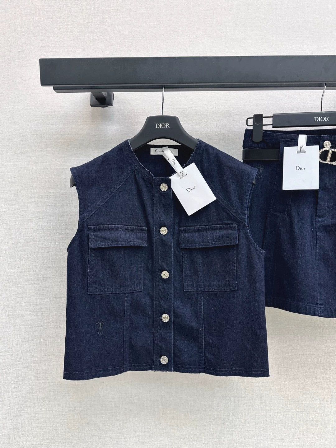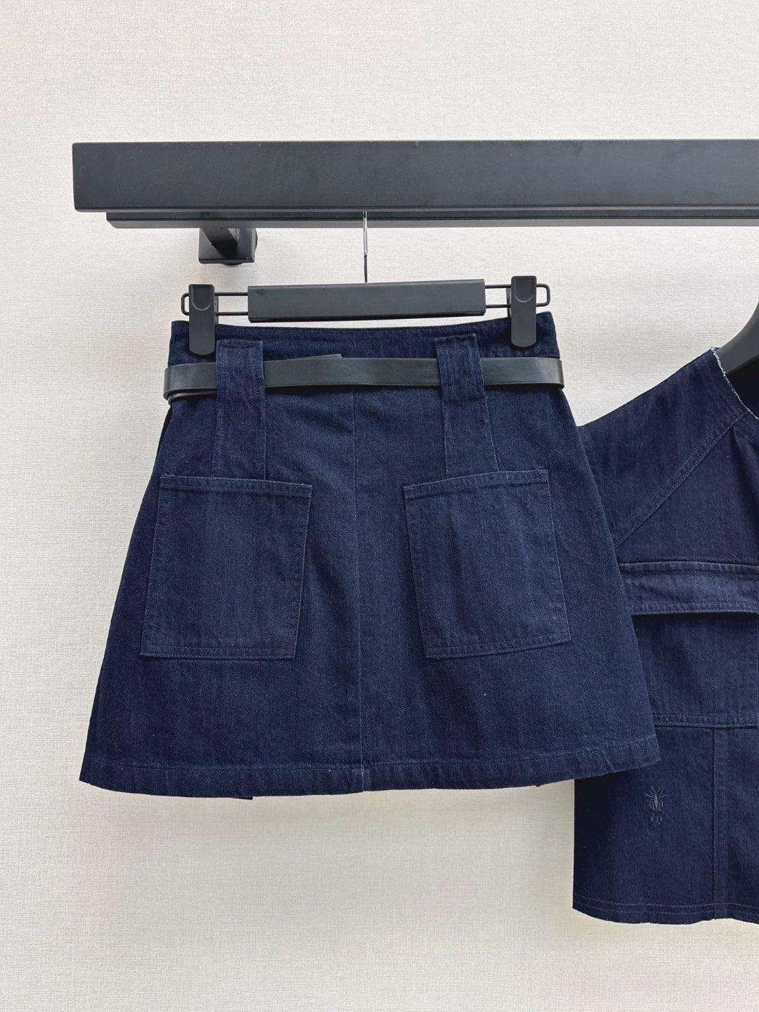 Round neck silhouette vest + A-line skirt Rare both fashionable and sophisticated tone with casual loose single product can be a set of matching or wear alone is also very versatile pulp denim color system versatile and durable never out of fashion Using imported denim fabrics