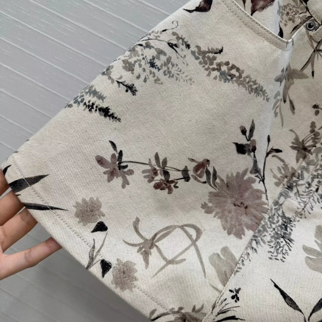 D 25 New Fresh and Light Ink Print Denim Half Skirt