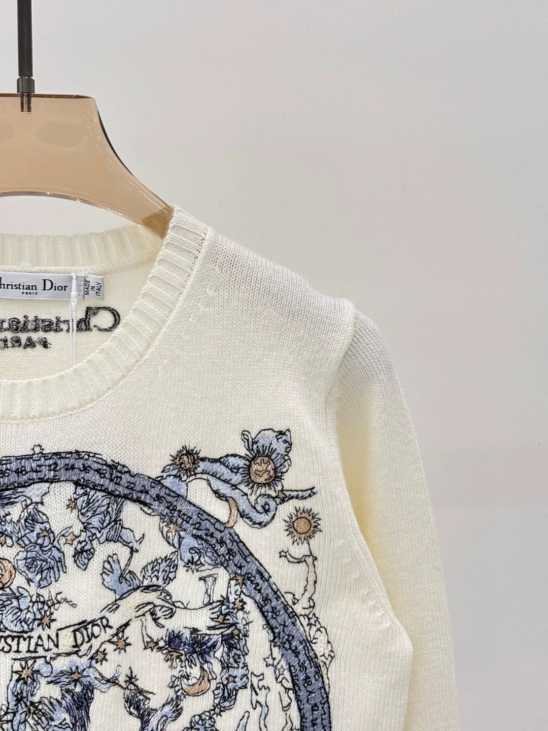 D 25 Spring and Summer New Round Neck Letters Floral Logo Embroidery Knitted Long Sleeves