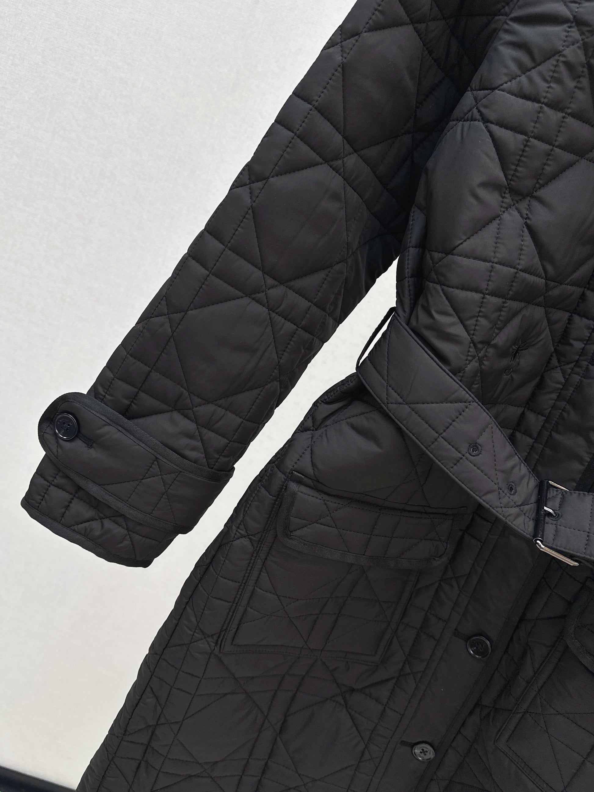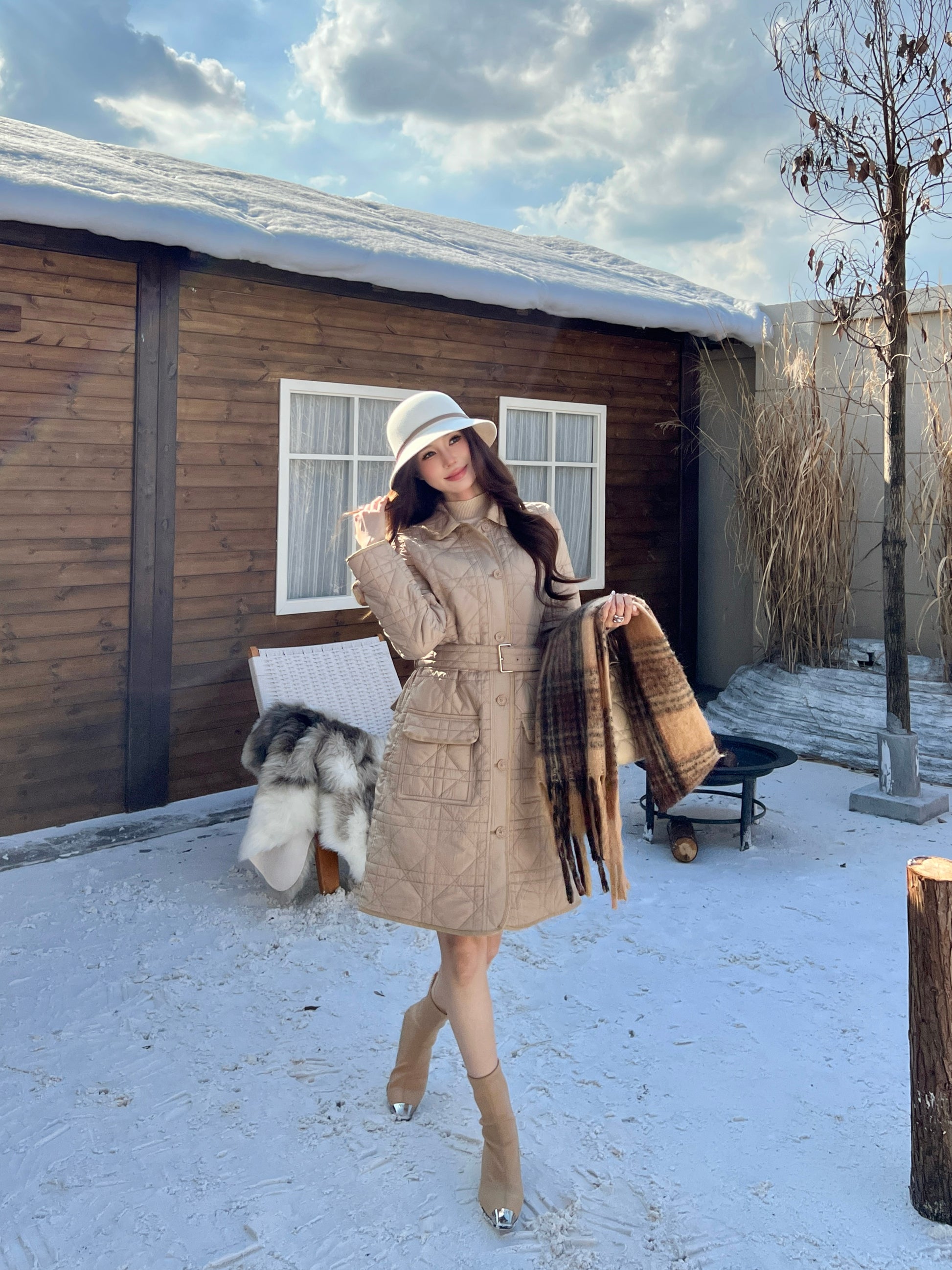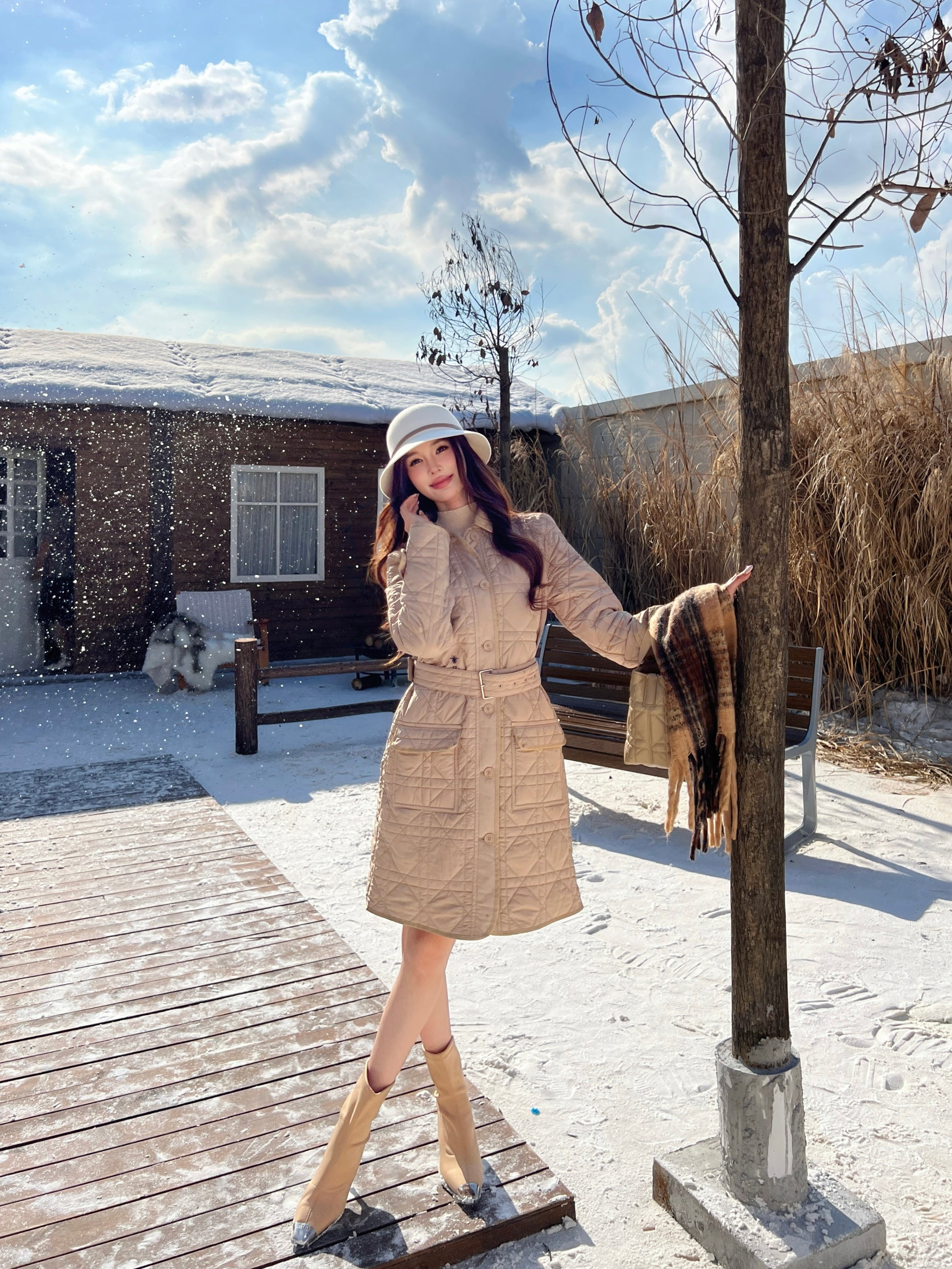 Di 25 Princess Diana rattan check quilted lapel long coat(Khaki/balck)