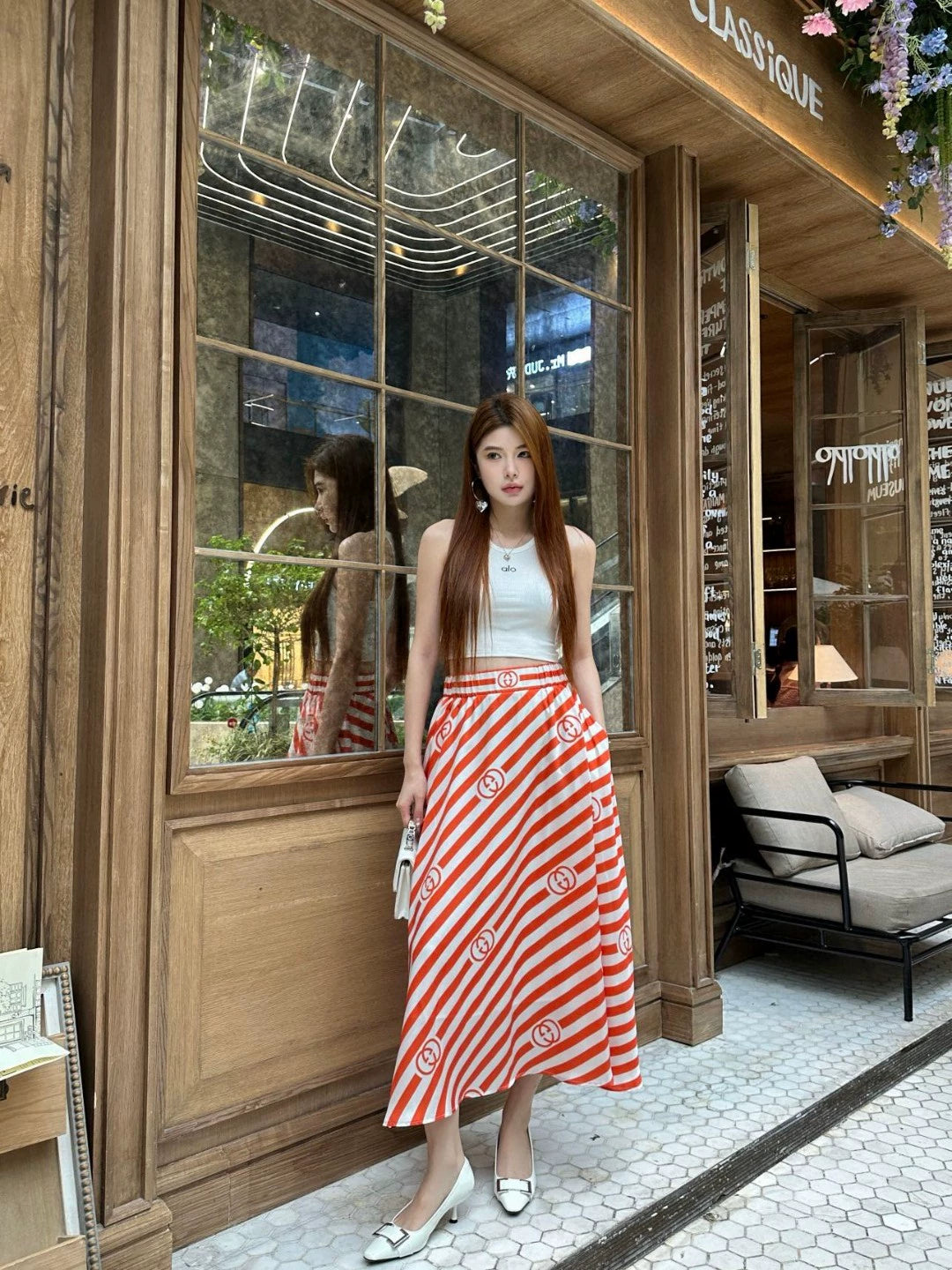 G 25 New Clashing Color Stripe Letter Half Skirt(brown orange)