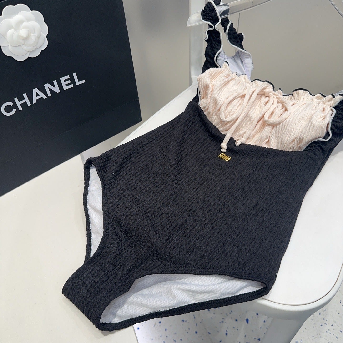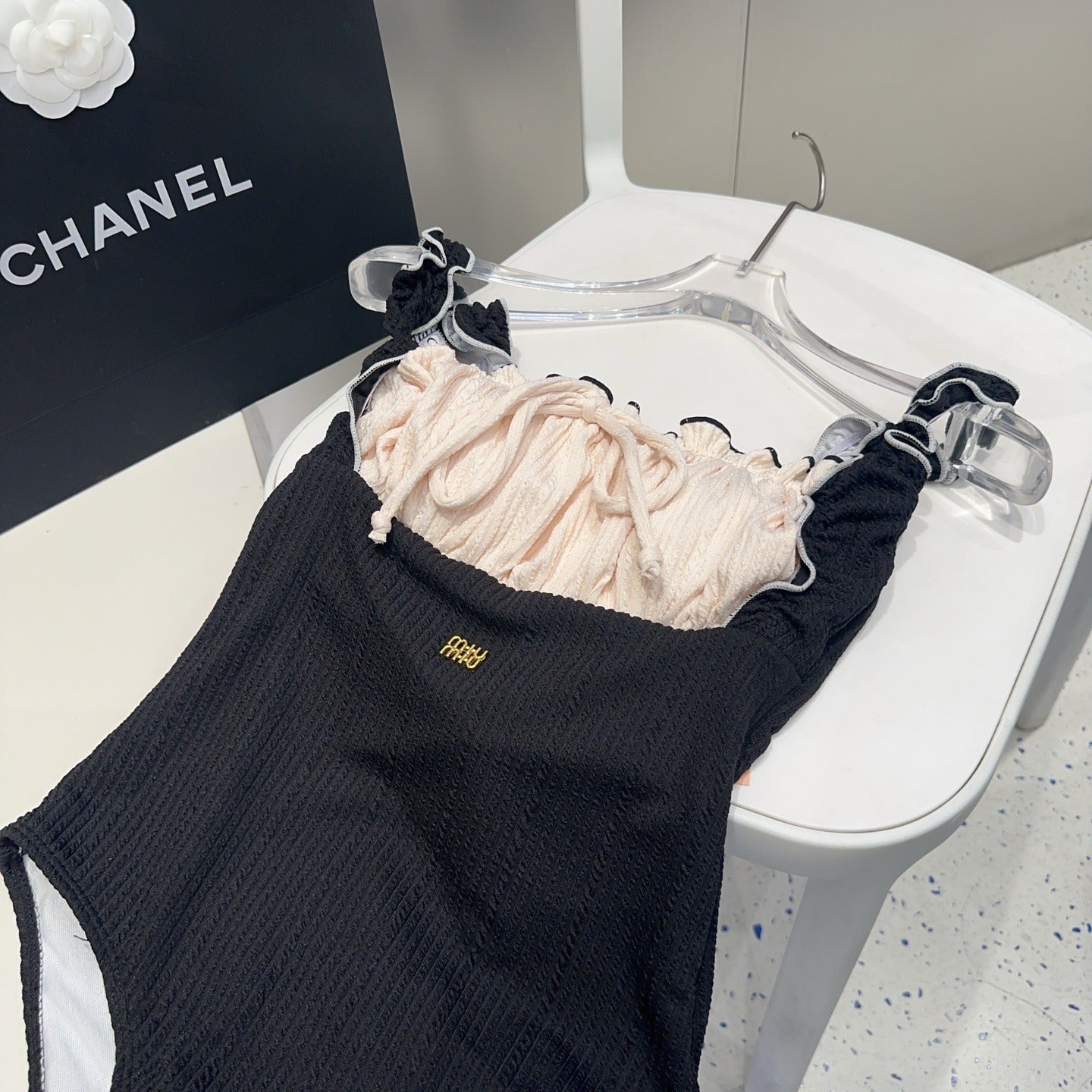 M 25 Ribbon Pink Chest One-piece Swimsuit