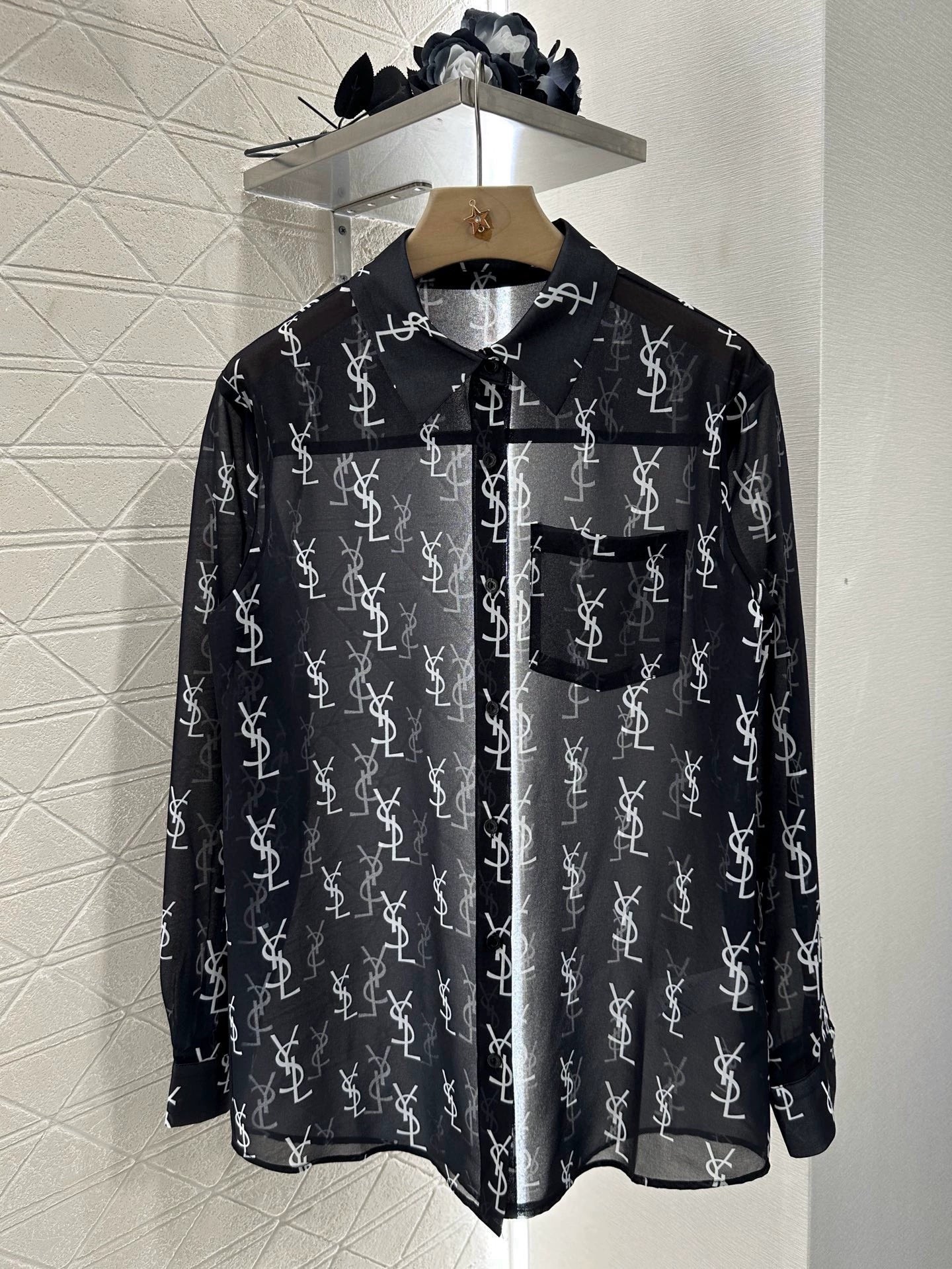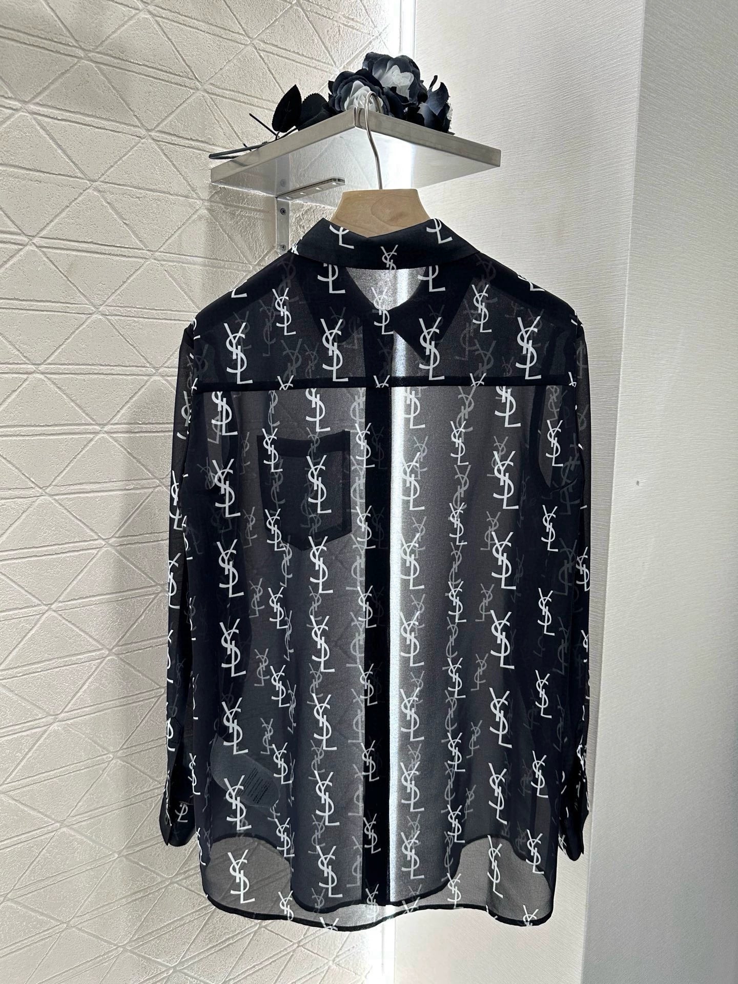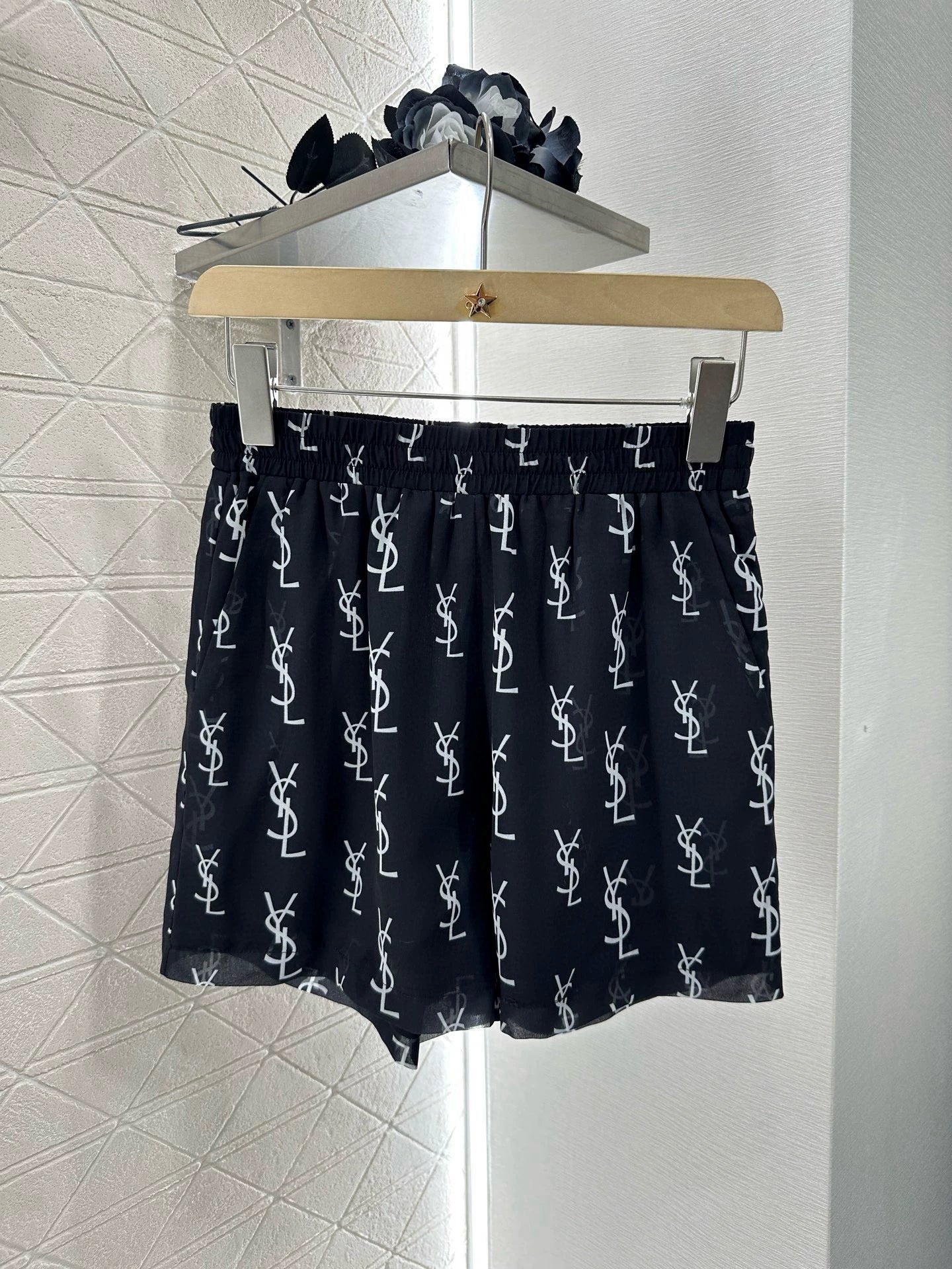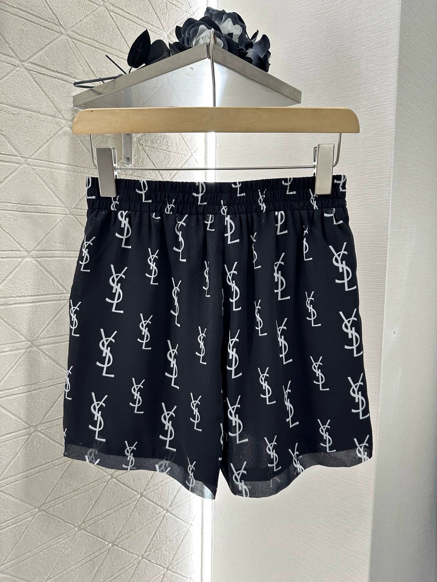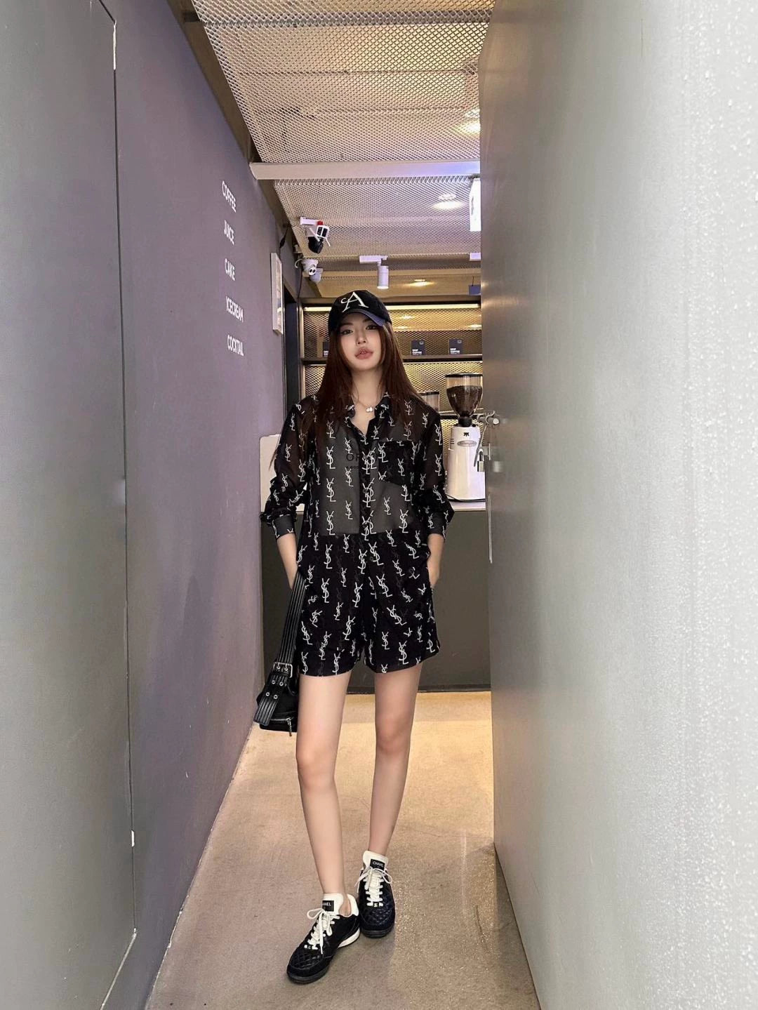 Imported twill thick material texture smooth and comfortable shoulders lapel shirt ➕ high-waisted elastic shorts suit body full of printed monograms old money loose sense of full top modification of the body temperament elegant fine pointed collar with the front single-breasted buttons decoration with the same series of shorts